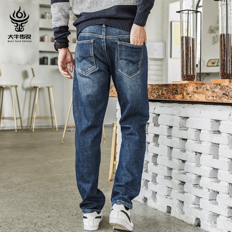 淘老爷车牛仔裤男士中老年直筒男裤秋冬厚款宽松爸爸弹力休闲长裤子