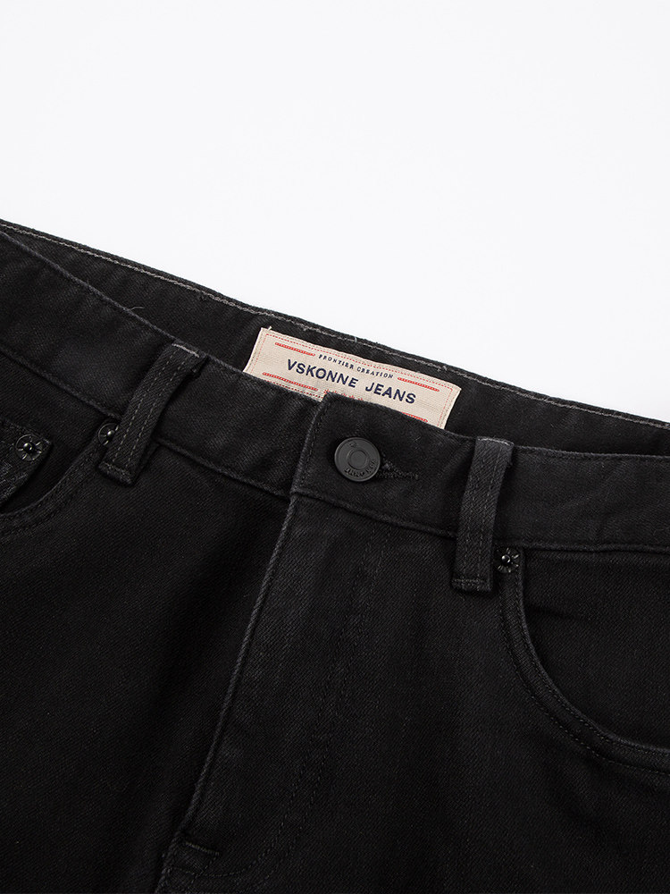 VSKONNE威斯康尼男士黑色牛仔裤,采用优质棉质面料,融入微弹科技,穿着舒适自在,活动更自如。中腰设计贴合身形,直筒剪裁修饰腿型,适合多种体型。经典黑色百搭耐看,轻松驾驭日常通勤、休闲聚会等场合。细节做工精致,车线牢固,口袋与五金质感出众,彰显品质感。无论是搭配T恤、衬衫还是卫衣,都能展现青年男性的简约时尚风格。VSKONNE威斯康尼致力于为现代男性提供兼具舒适与型格的日常穿搭选择,是衣橱中不可或缺的百搭单品。