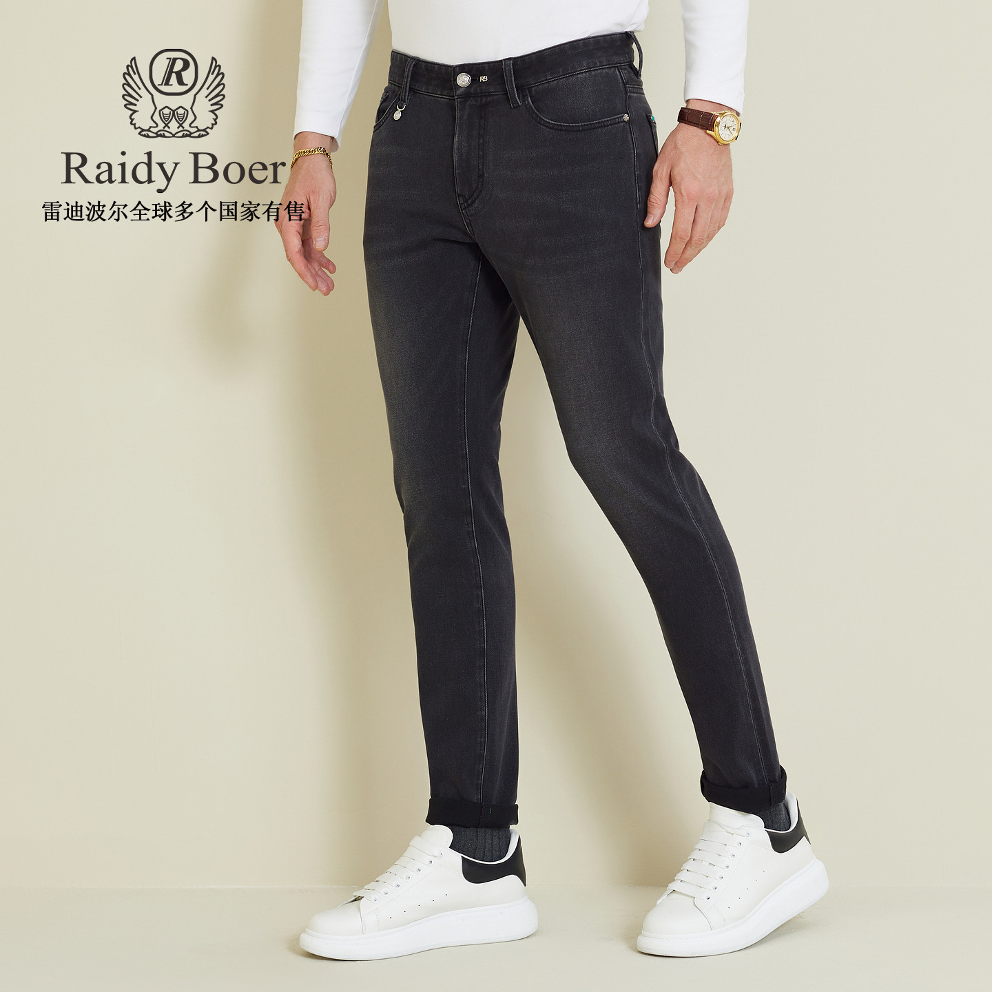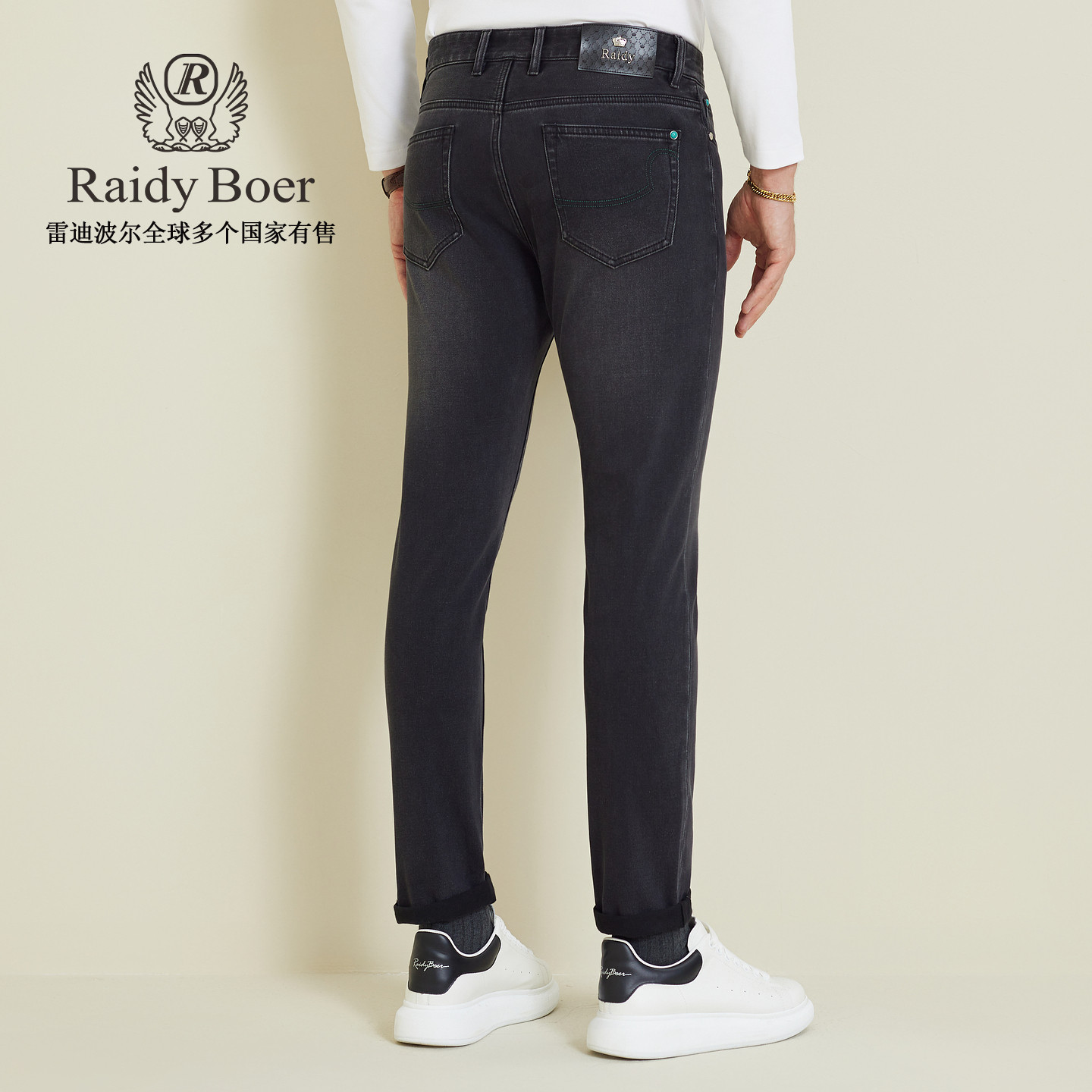 RaidyBoer/雷迪波尔2025秋冬季修身牛仔裤男款6031,采用四面弹面料,赋予双腿自由伸展的舒适体验,兼顾挺括版型与灵活活动性。加厚设计有效抵御秋冬寒意,保暖而不臃肿,适合日常通勤与休闲出行。修身剪裁凸显腿部线条,简约利落,轻松搭配各类上衣。高弹腰头与精致车工细节提升穿着品质,后袋立体压纹彰显品牌质感。无论是搭配毛衣、夹克还是卫衣,都能轻松驾驭多种风格,是男士秋冬衣橱的实用之选,兼具时尚感与功能性。