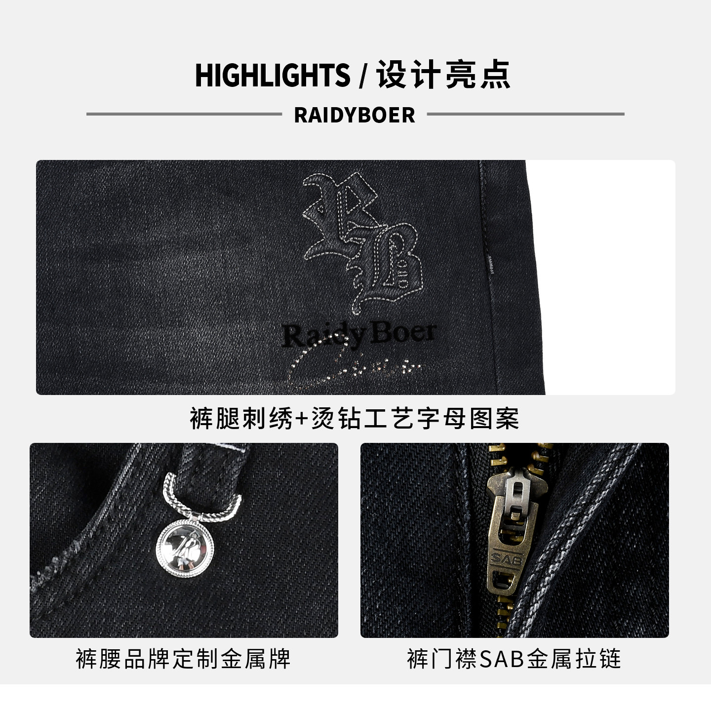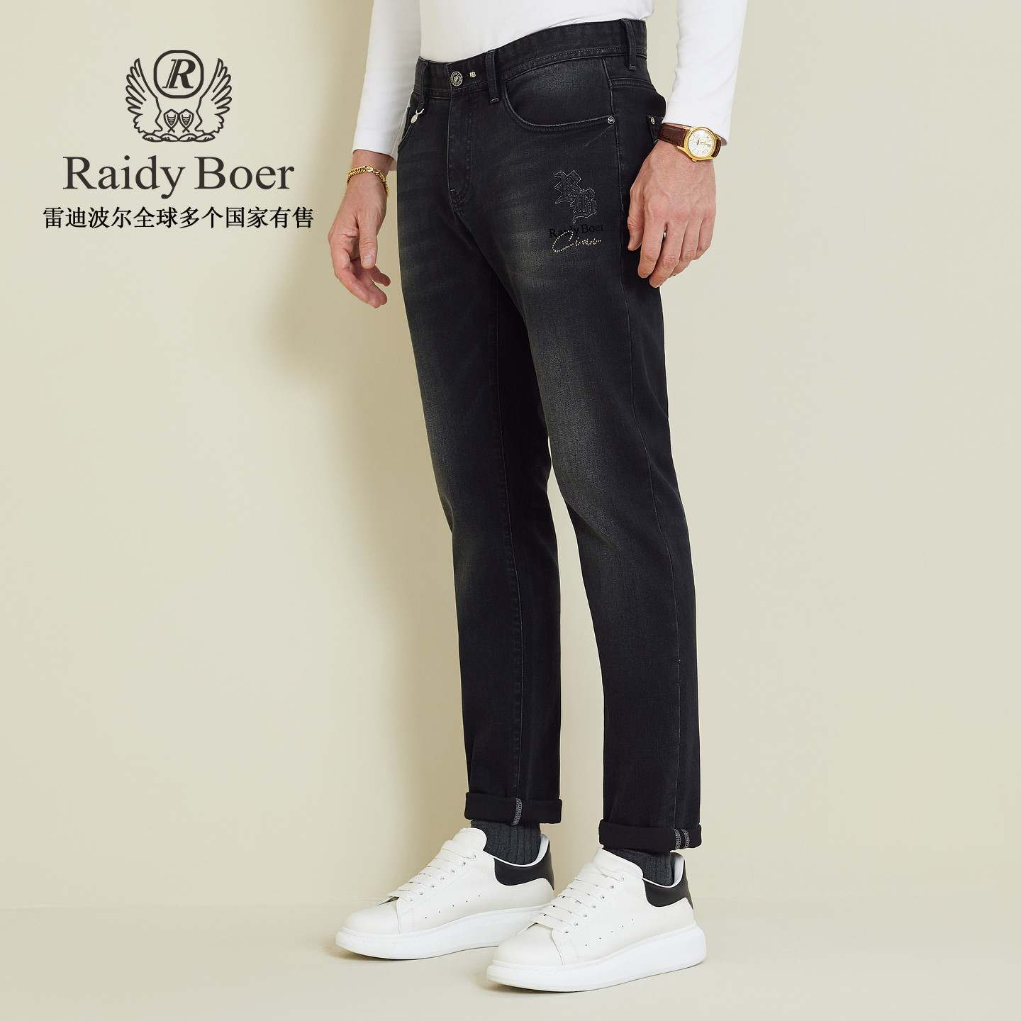 天猫【轻软海岛绒】Raidy Boer/雷迪波尔2025秋男刺绣烫钻牛仔裤 6016