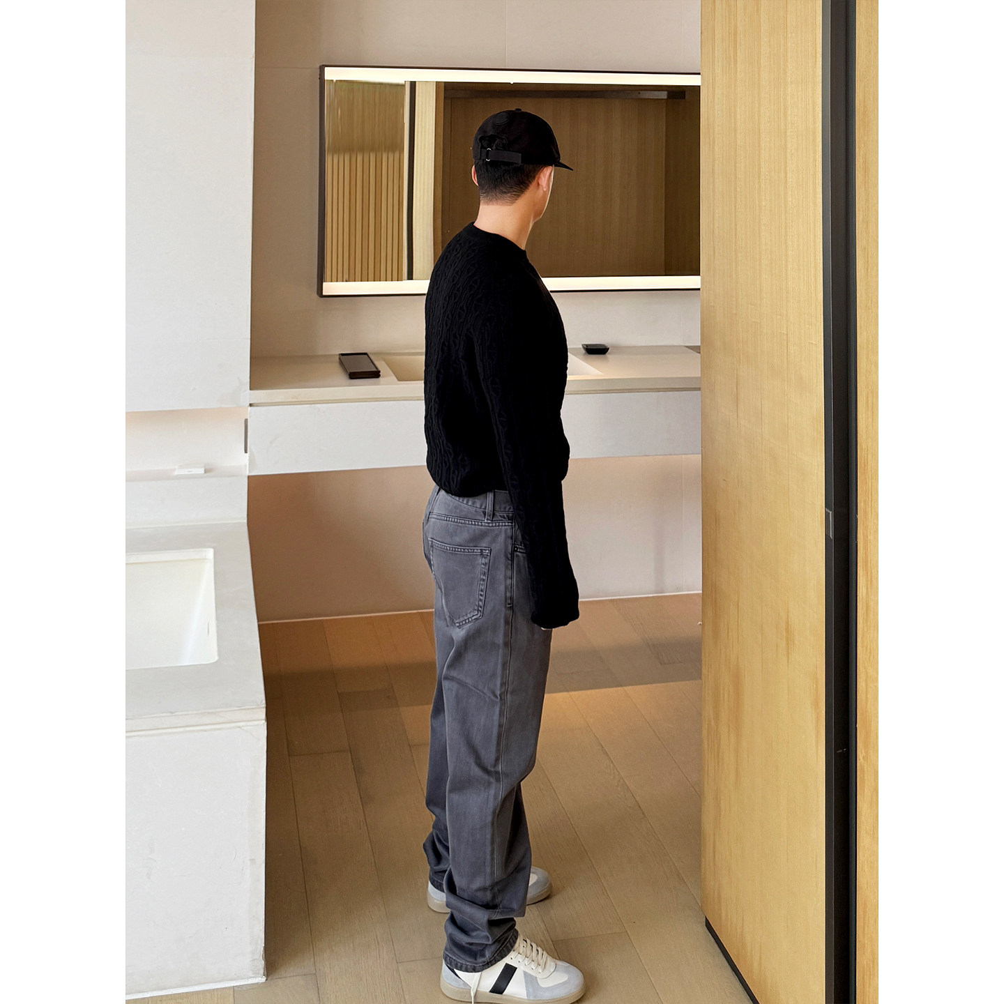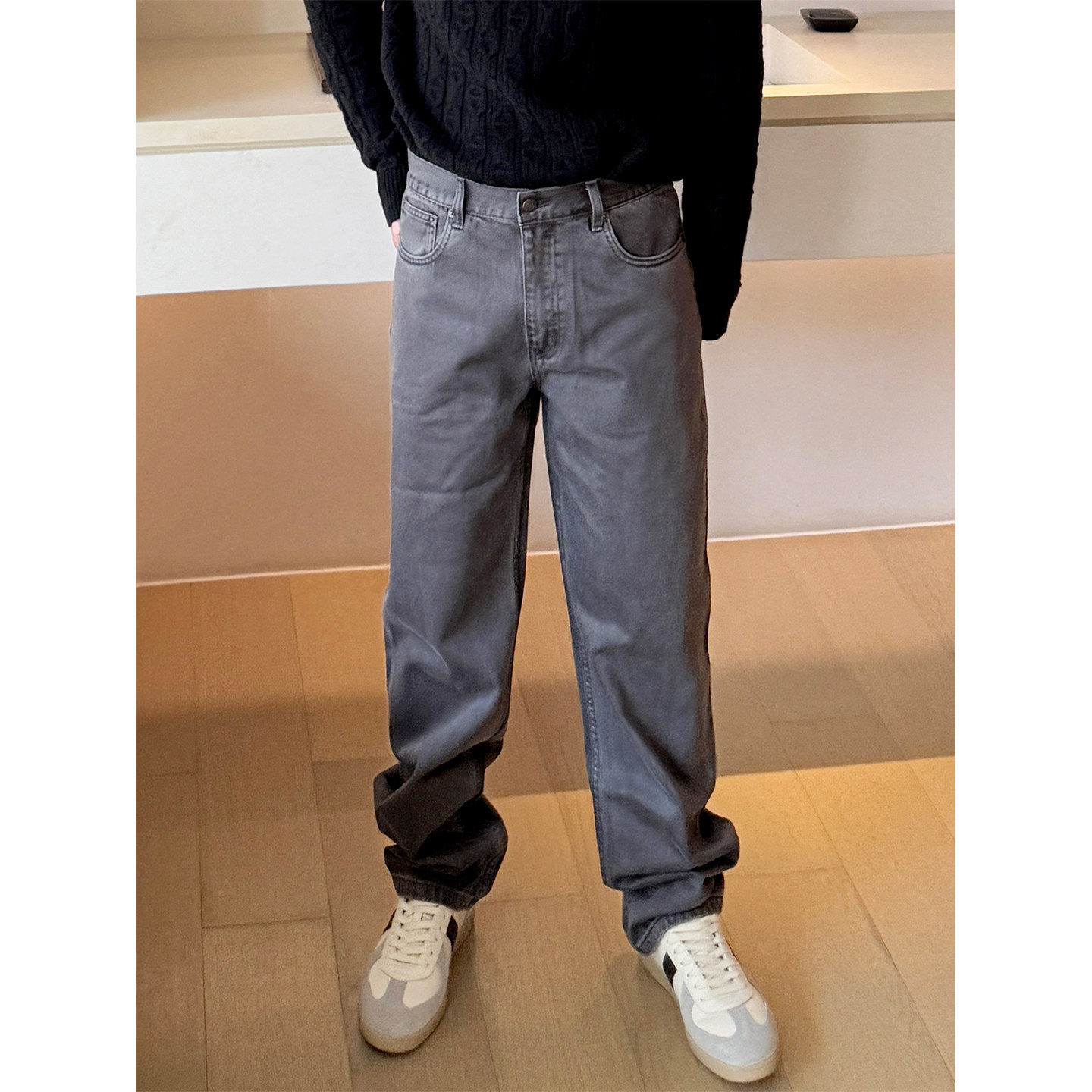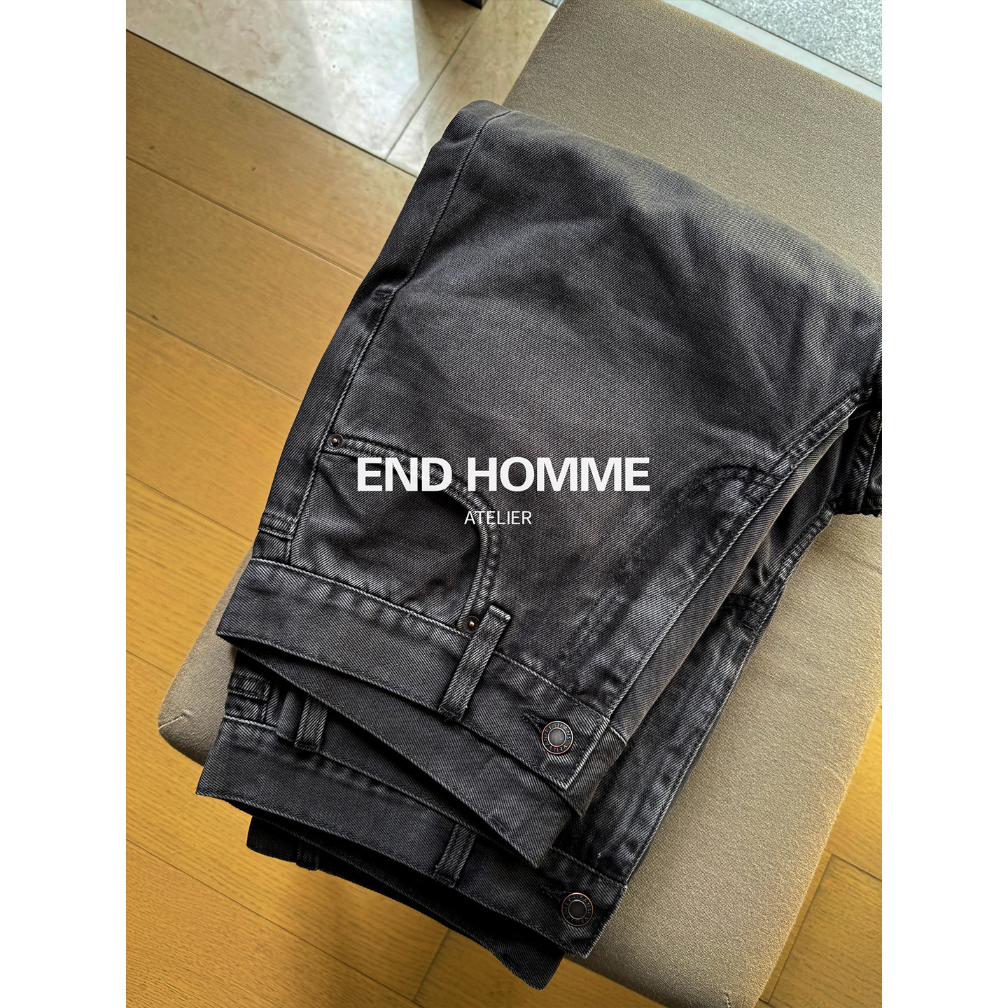 淘宝END HOMME 复古做旧row烟灰色中腰通勤休闲直筒牛仔裤男