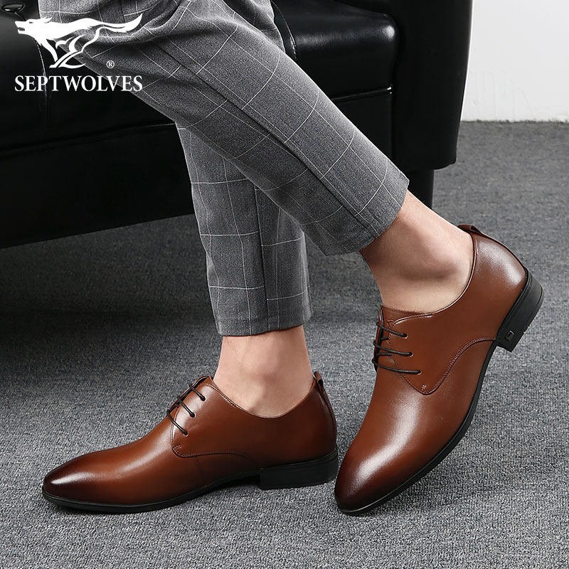 天猫七匹狼尖头真皮皮鞋男冬季透气商务正装鞋子男士青年办公工作男鞋