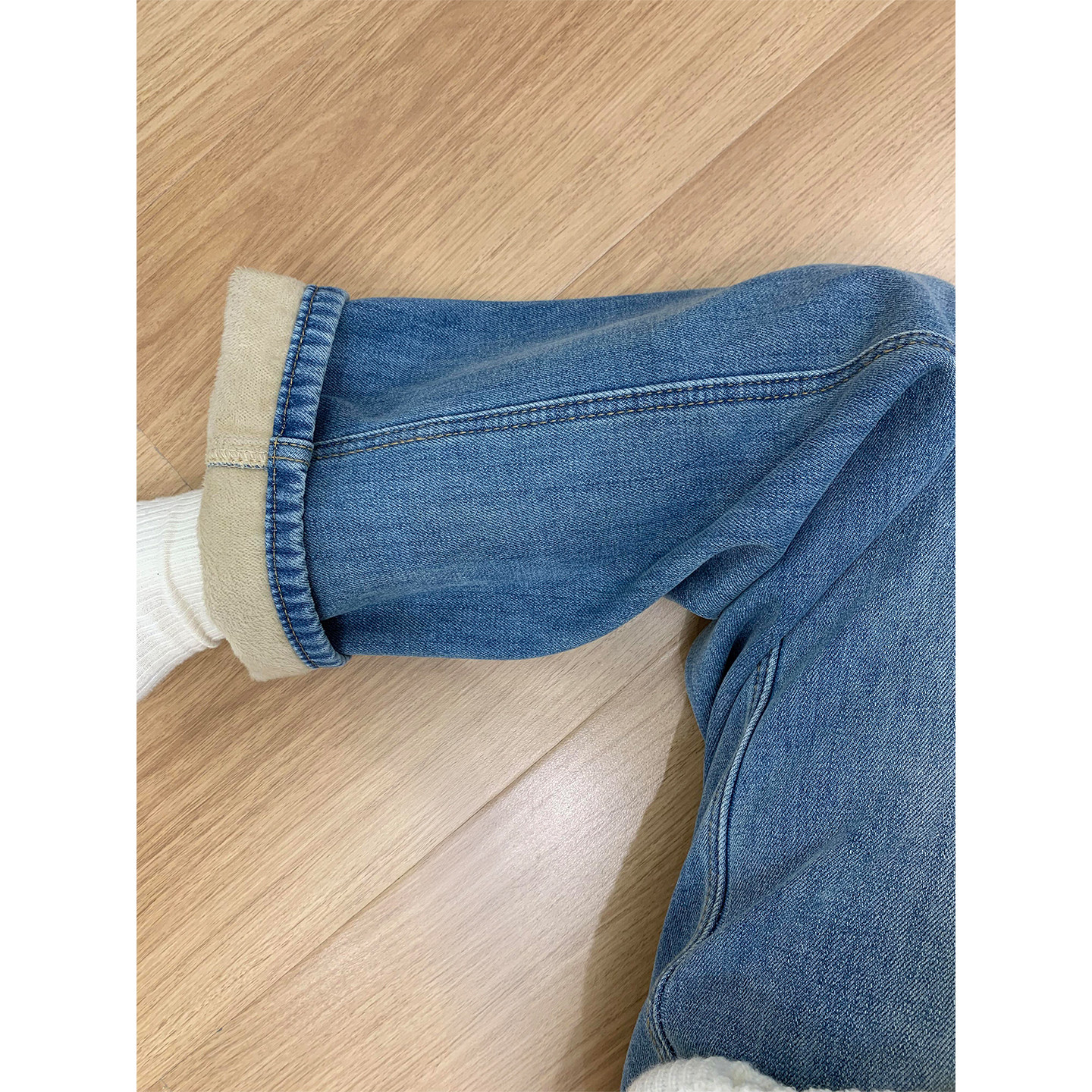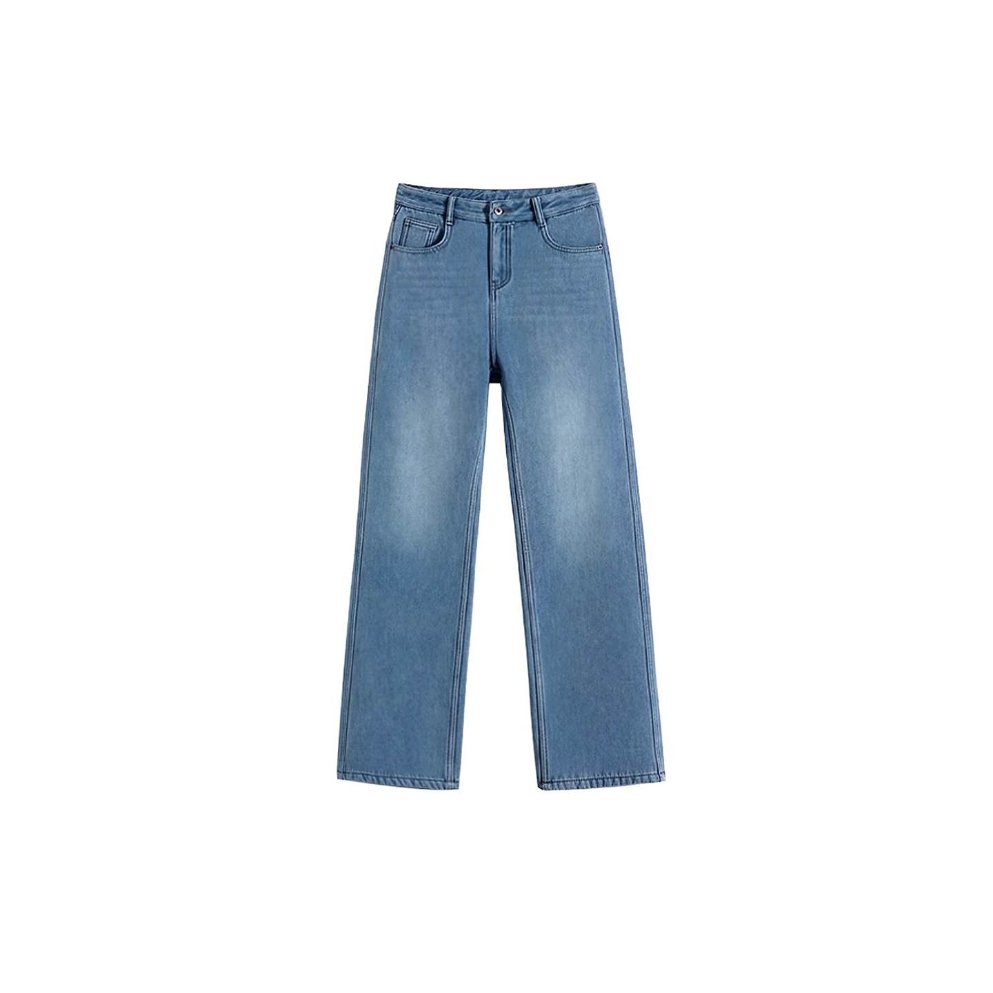 这款加绒加厚蓝色直筒牛仔裤,专为秋冬设计,兼顾保暖与时尚。采用高腰宽松版型,巧妙修饰腰腹线条,视觉显瘦效果显著,特别适合微胖妹妹穿着。阔腿直筒剪裁包容性强,轻松隐藏腿部赘肉,行走间尽显随性慵懒气质。内里细腻加绒,柔软亲肤,锁温保暖,应对寒冷天气无压力。经典复古蓝色百搭耐看,可轻松搭配毛衣、卫衣或大衣,打造秋冬时髦造型。无论是日常通勤还是休闲出行,这条长裤都能让你舒适自在,自信出彩,是胖MM衣橱不可或缺的实用单品。