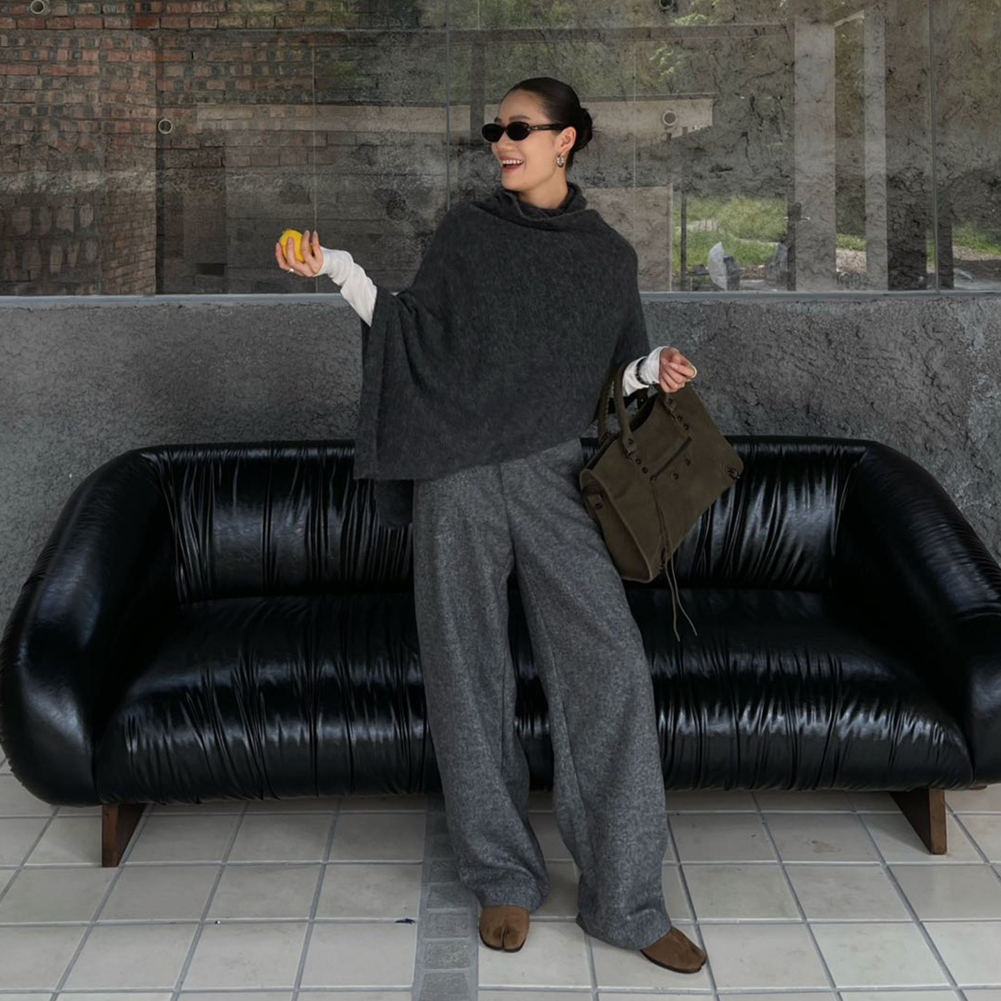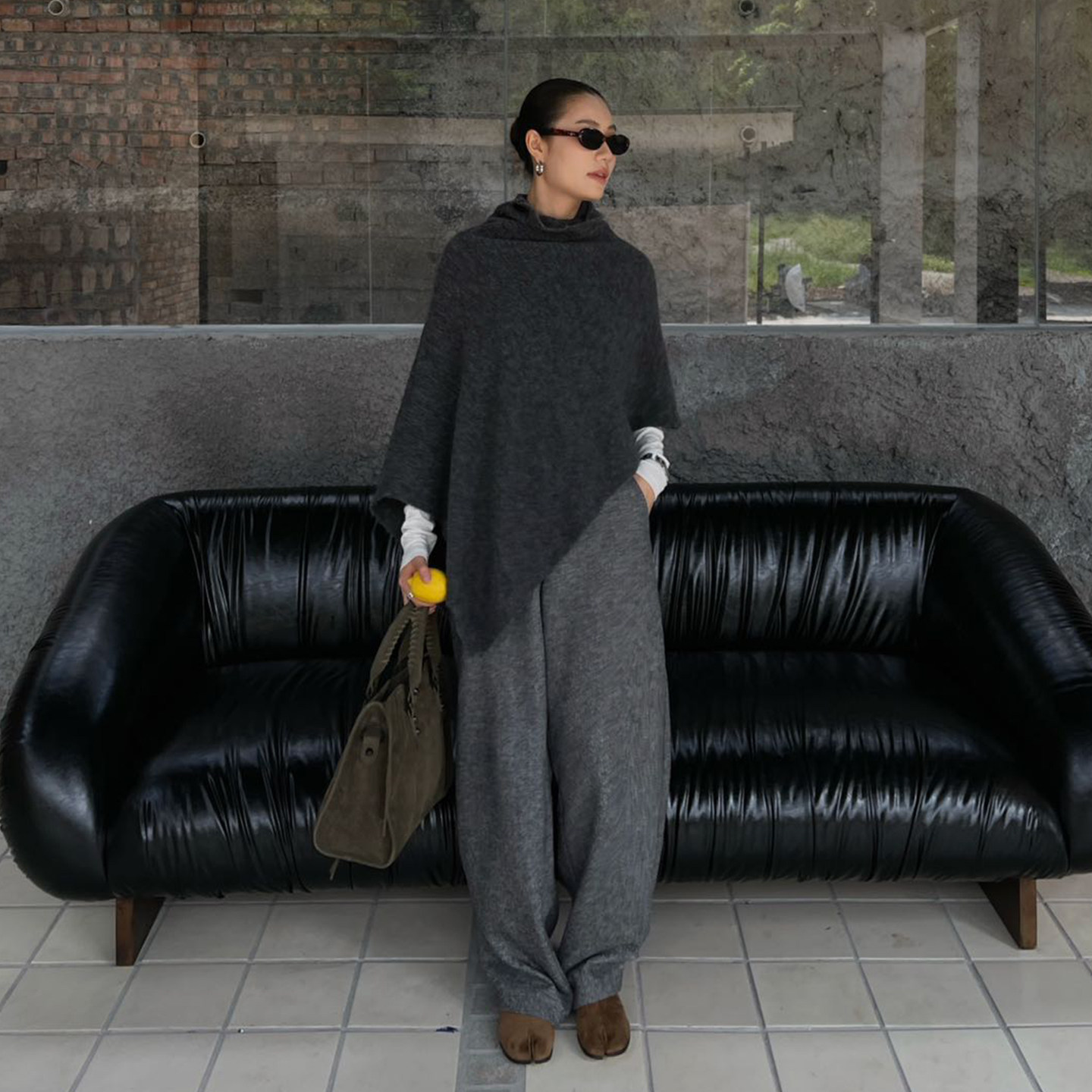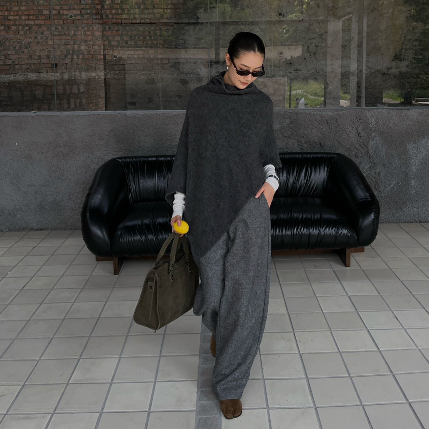 淘宝PURITYYH极简百搭灰色高个子阔腿裤女通勤羊毛阔腿裤垂感直筒裤子