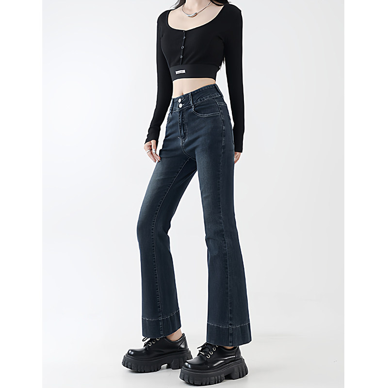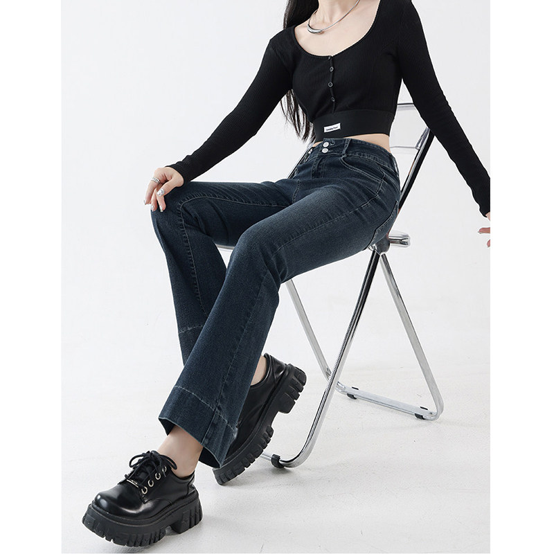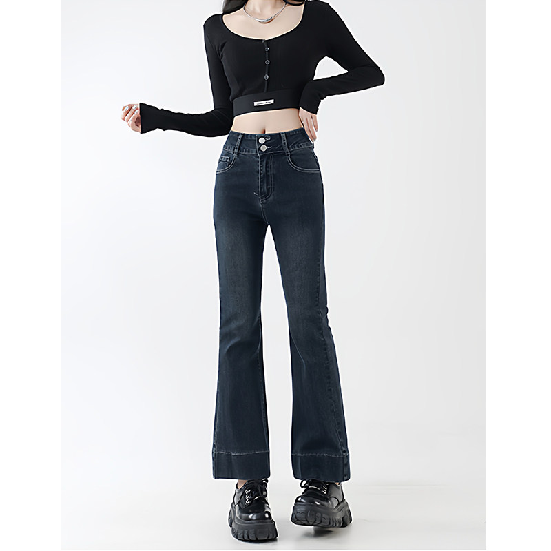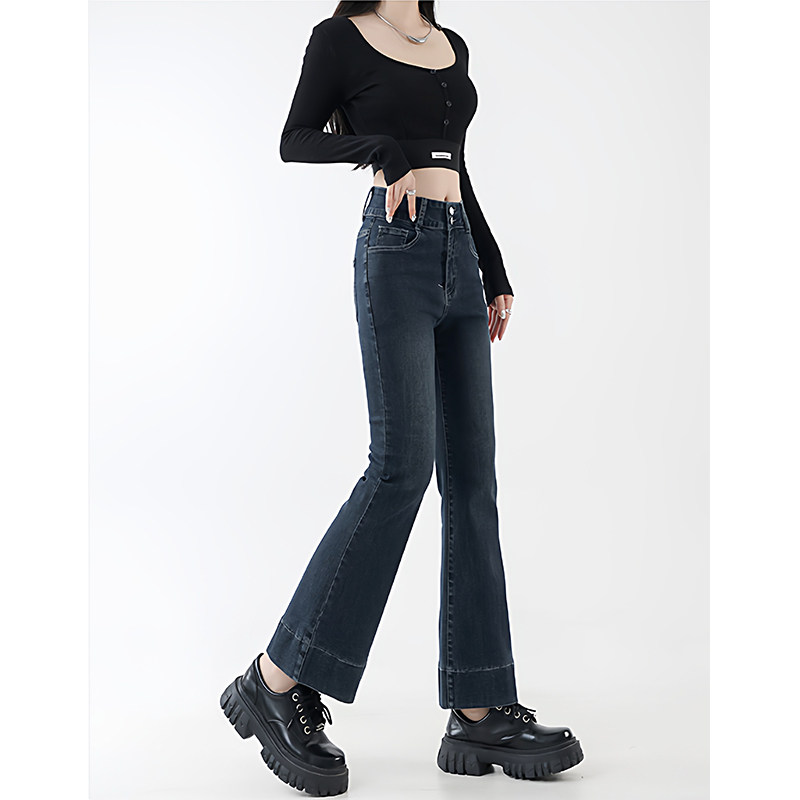 淘宝高腰直筒弹力微喇牛仔裤女加绒加厚秋冬新款大码梨形身材穿搭长裤
