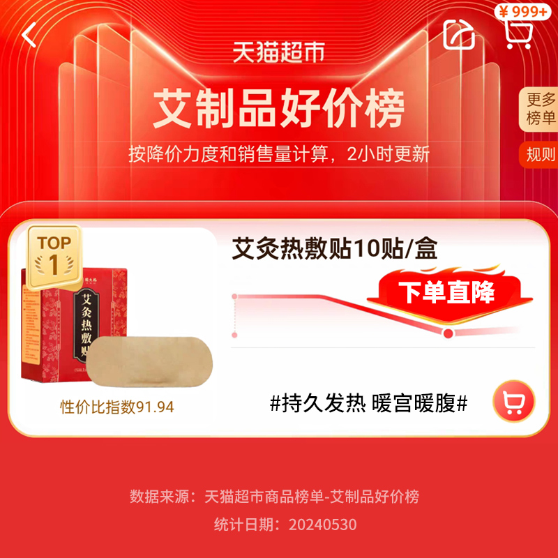 天猫艾灸贴自发热暖宝宝贴颈椎膝盖宫寒艾草热敷包暖宫贴肚子精油艾贴
