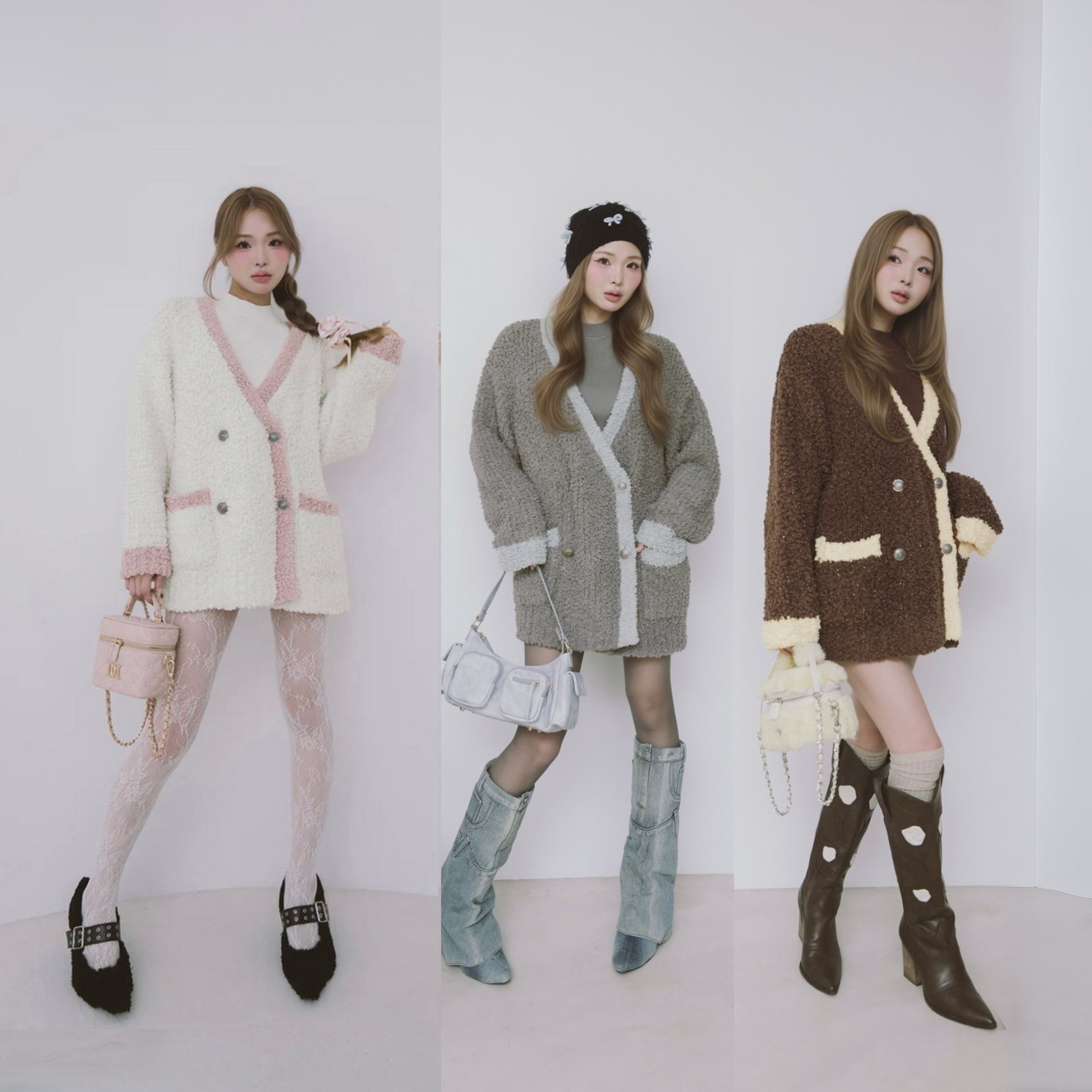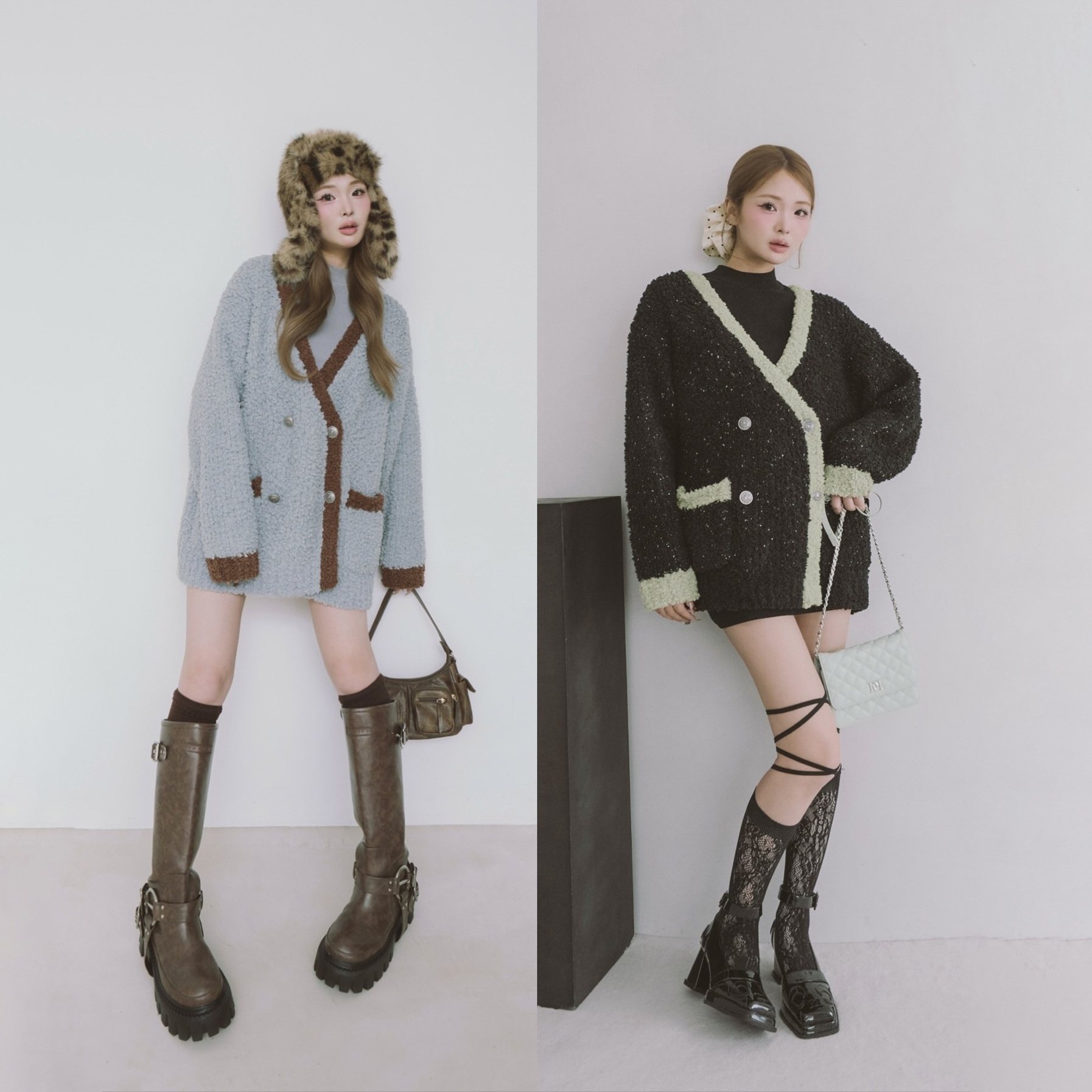 超人气~d@r1ch保暖软糯配色V领宽松针织开衫外套+修身连衣裙套装,以温柔软糯的针织面料打造,触感亲肤,保暖又舒适。宽松V领开衫设计慵懒随性,轻松拉长颈部线条,搭配同色系修身连衣裙,勾勒优雅身形,整体造型简约而不失高级感。柔和的配色如燕麦、浅咖、雾霾蓝等,百搭又显气质,适合秋冬日常通勤、约会或休闲出行。开衫可单穿可叠搭,连衣裙单穿亦显精致,一套多穿,实用性强。无论是叠穿大衣还是单穿出街,都能展现温柔知性魅力,是秋冬衣橱不可或缺的时尚单品,轻松穿出松弛感与高级范儿。