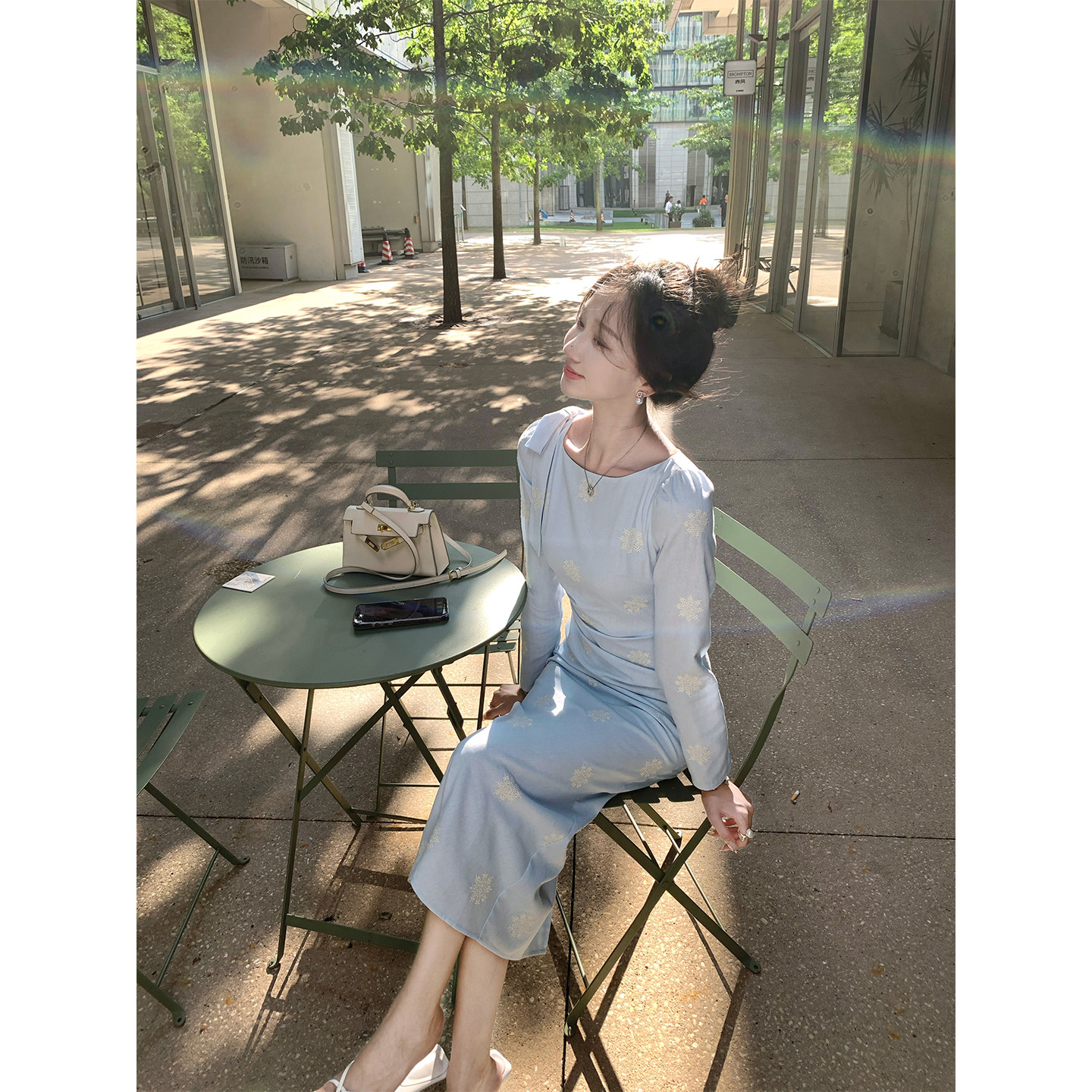 天猫韩语琳 小众设计感刺绣长袖连衣裙女2025春季巨好看气质名媛长裙