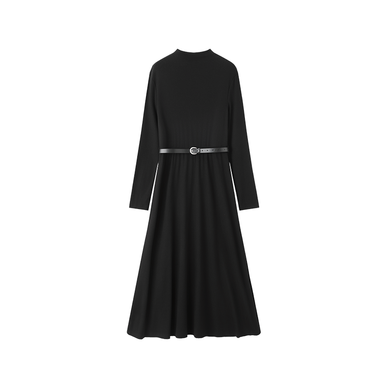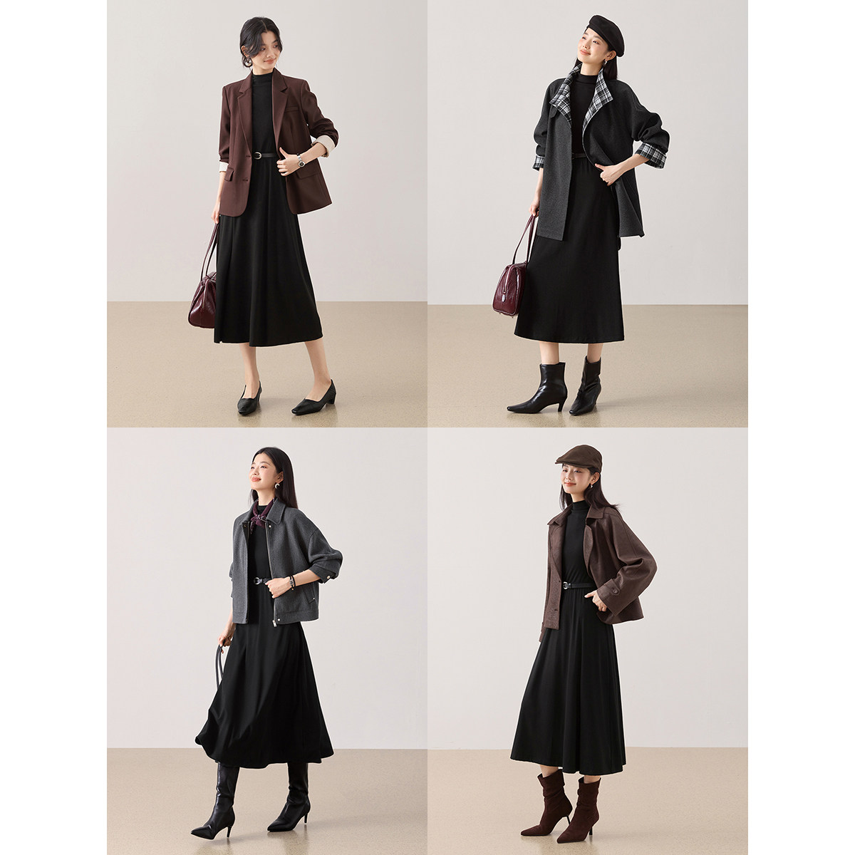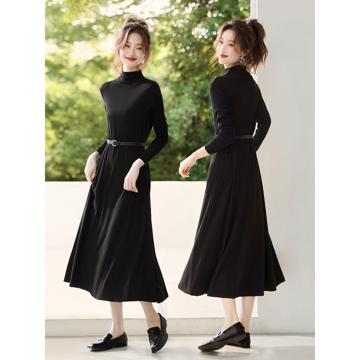 淘宝沫晗依美高智淡人风裙子2025秋季韩系气质半高领中袖内搭连衣裙女