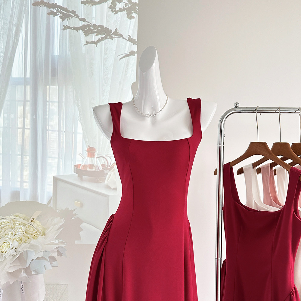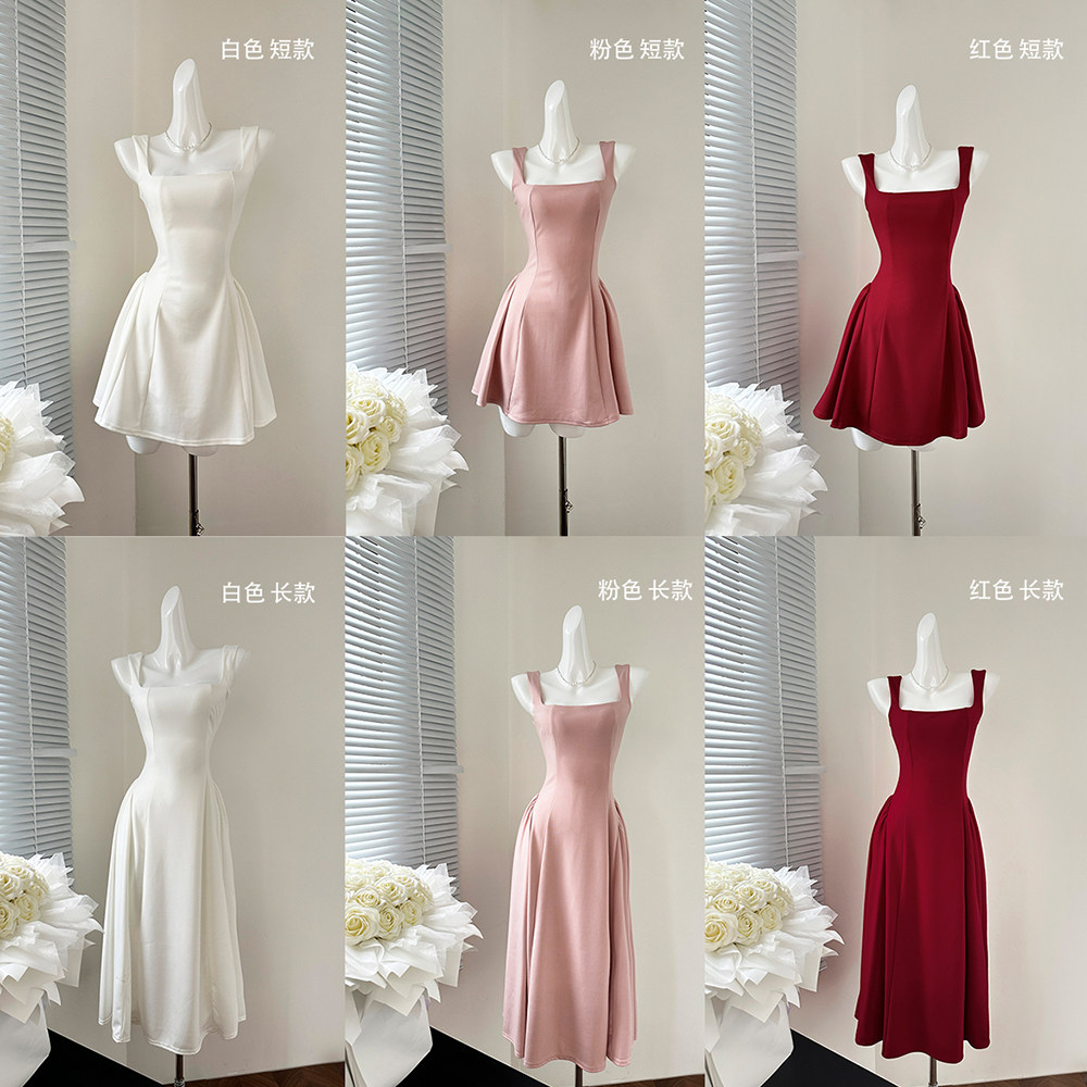 淘宝法式千金收腰吊带连衣裙女春夏季粉色显瘦a字裙气质高级感背心裙