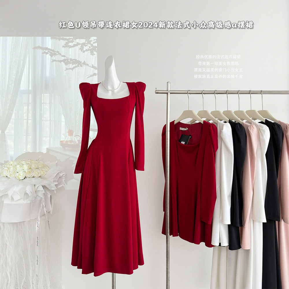 天乐町碎花吊带方领连衣裙女装26春夏新品长款优雅裙摆分割收腰裙子