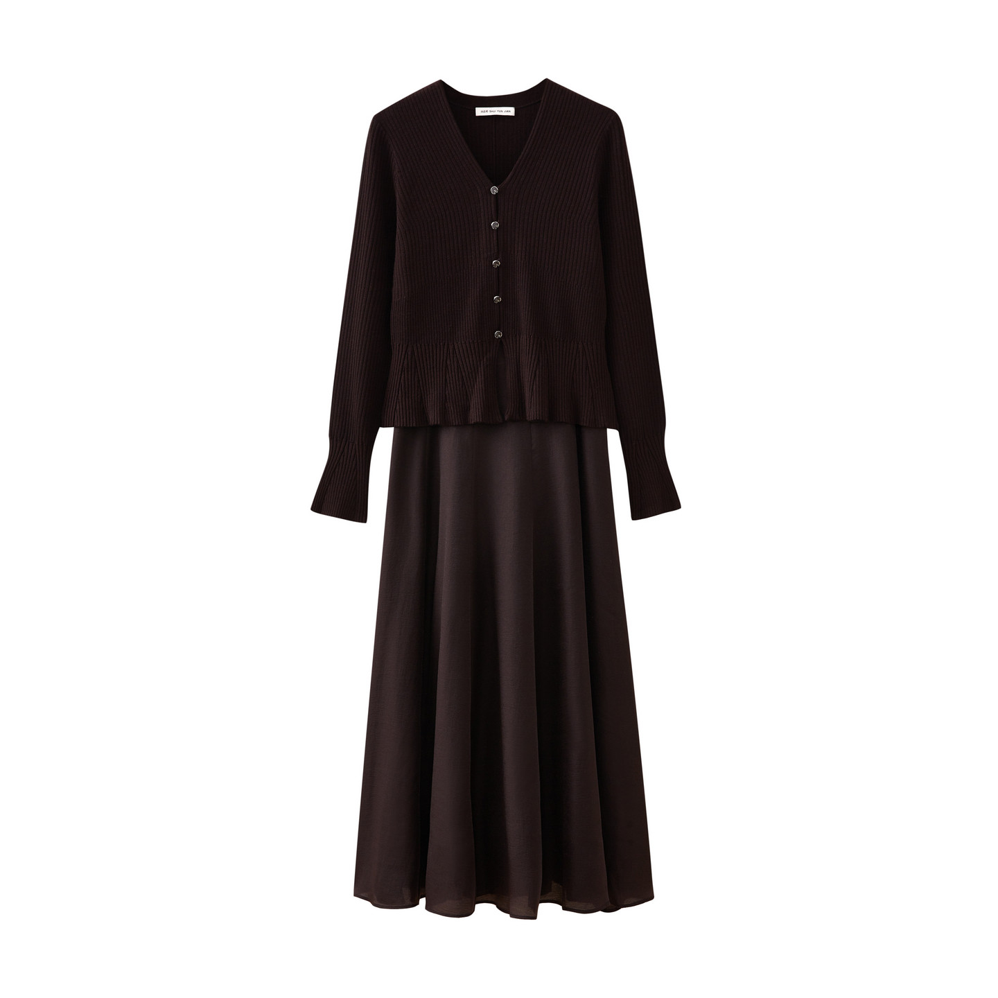 天猫水云间女装 圆领优雅简约老钱风拼接针织连衣裙套装2025冬季新款