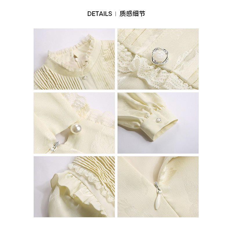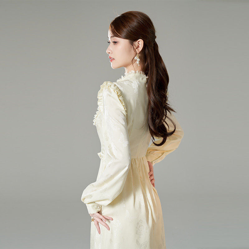 YINER音儿专选秋季女装法式撞色木耳花边通勤风连衣裙
