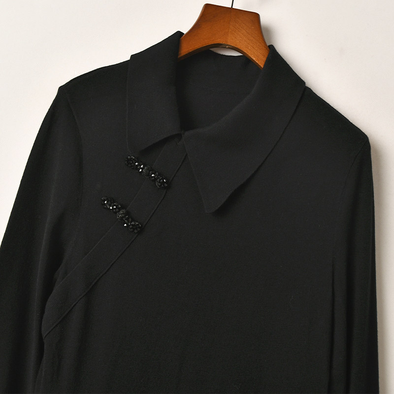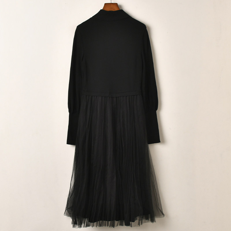 淘宝艾诺丝系列盘扣网纱拼接连衣裙女黑色气质修身中长款千金风