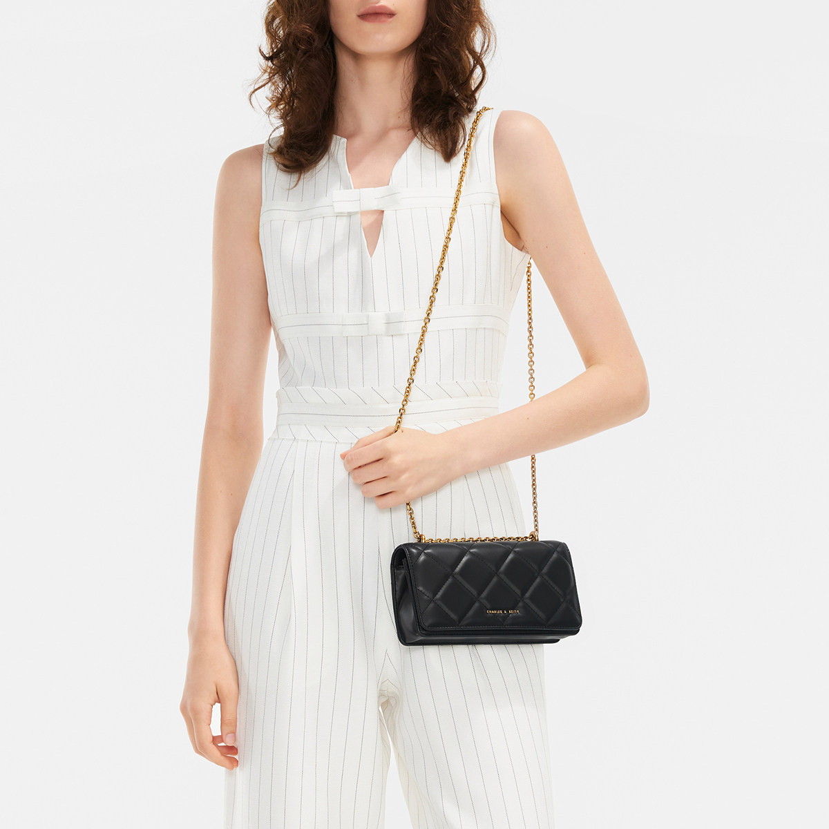 天[新年礼物]CHARLES&KEITH秋冬CK6-10680924菱格链条钱包斜挎包女