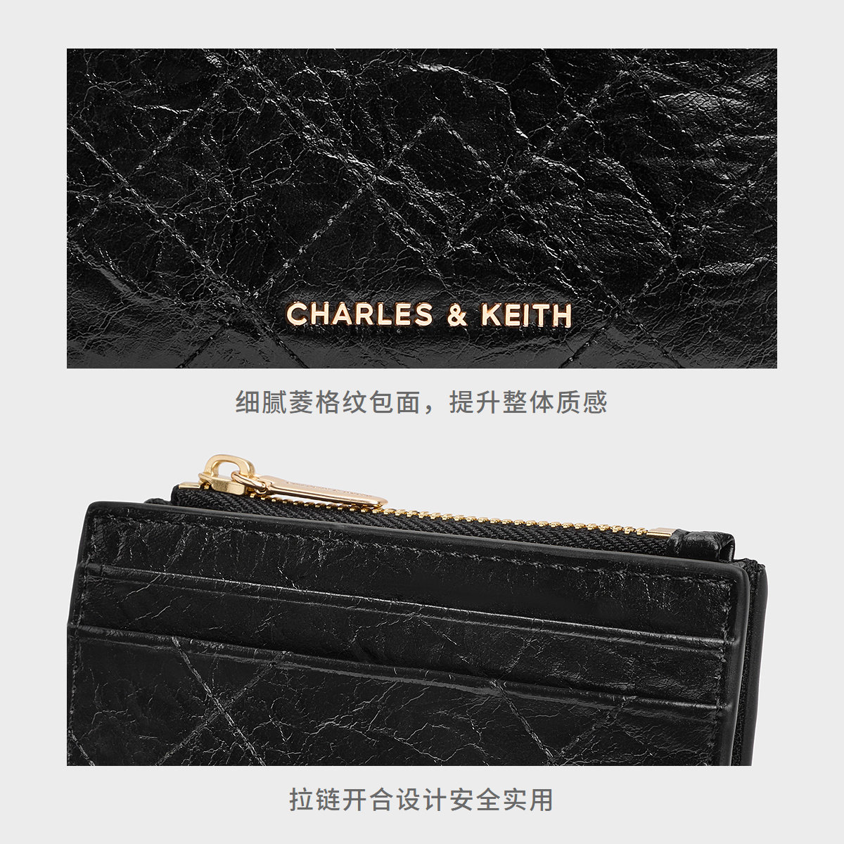 【新年礼物推荐】CHARLES & KEITH 2026春新款CK6-10701631菱格钱包零钱卡包,以经典菱格纹设计焕新登场,融合优雅与实用。采用优质皮革材质,触感细腻,质感出众。小巧身形却容量十足,内置多层卡位与零钱袋,轻松收纳卡片、现金与硬币,满足日常出行所需。精致金属LOGO点缀,彰显品牌格调。新年之际,无论是自用还是赠予亲友,都是兼具品味与心意的理想选择。让这款时尚卡包,开启崭新一年的精致生活,陪伴每一刻从容与美好。