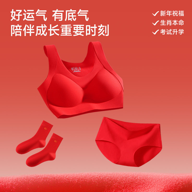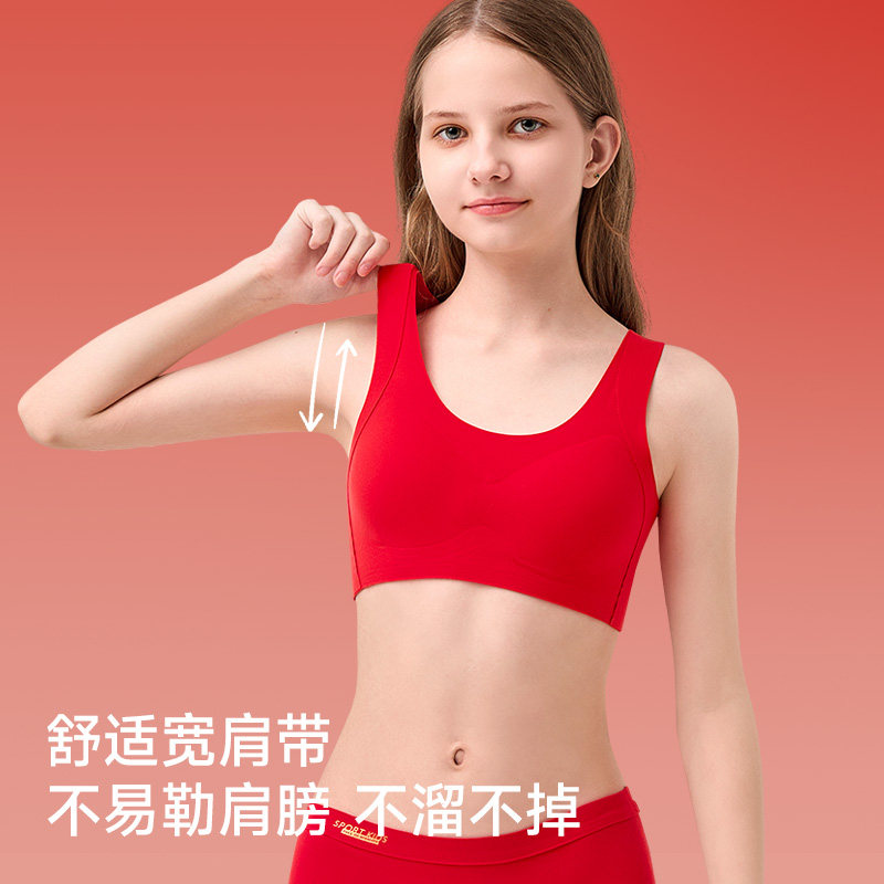 天爱慕少女发育内衣新年红色小奶皮背心三阶段少女运动文胸生肖马年
