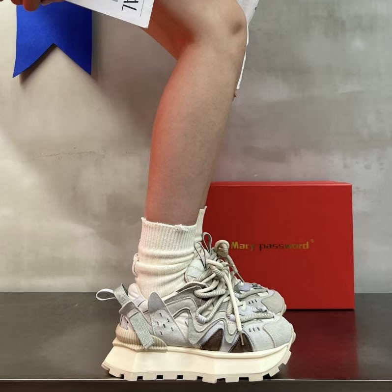 淘宝2024春季拼色小众华夫阿甘鞋女厚底老爹鞋ins增高运动鞋真皮帆布