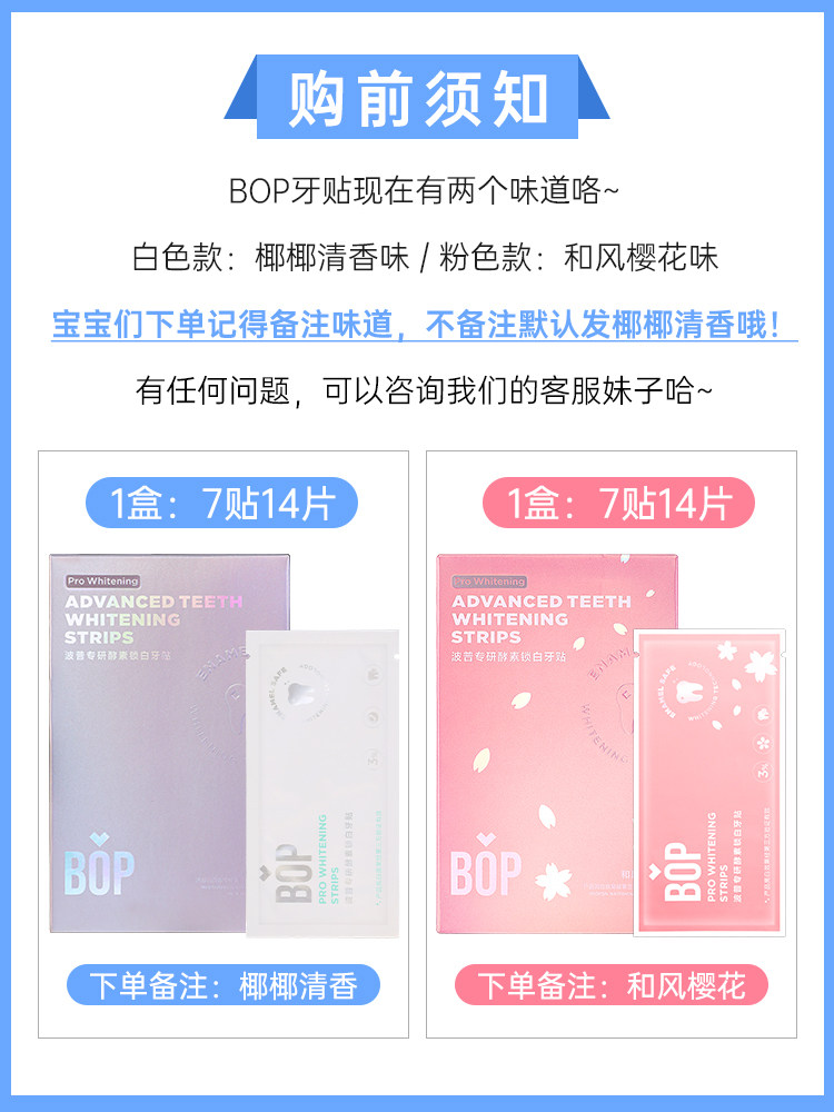 淘宝bop牙贴酵素锁白焕白牙齿变白温和护敏不黄不酸牙美牙贴片7对14贴