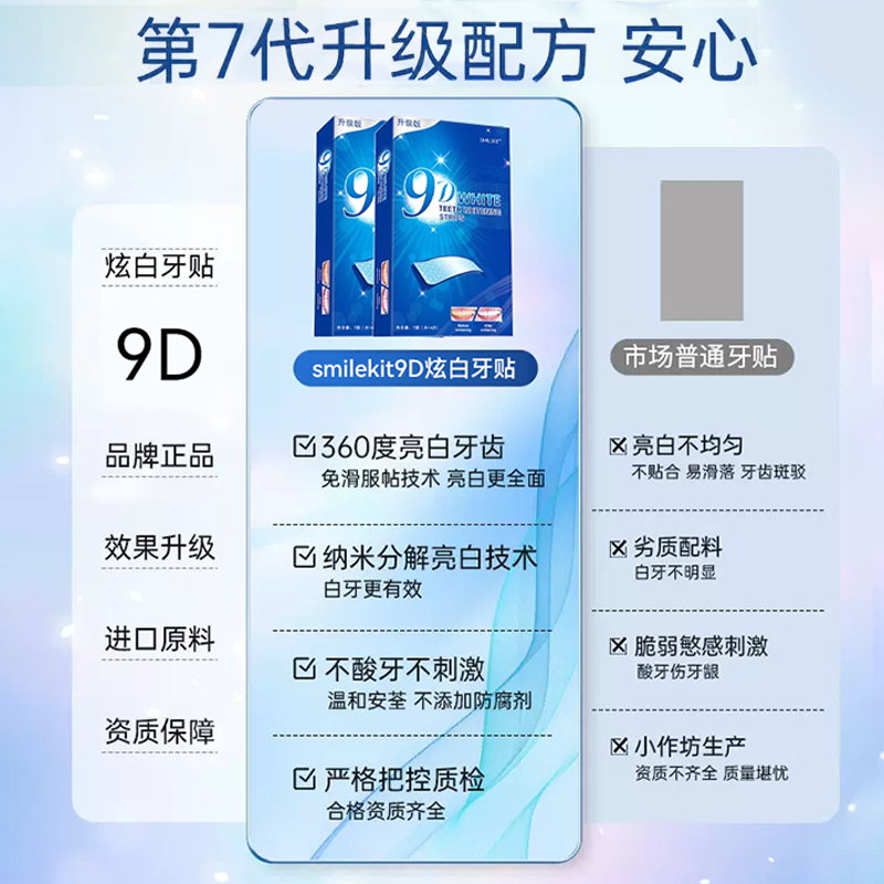 淘宝牙贴牙齿美白去黄洁白神器9d9D美版炫白牙贴片临时遮盖门牙去茶渍