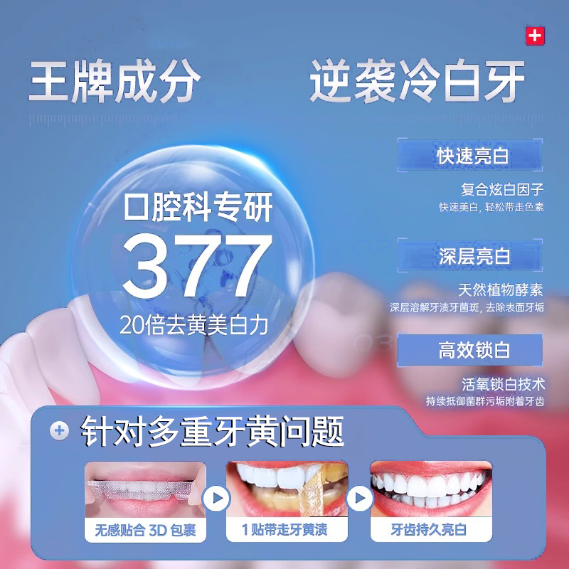 377美白牙贴牙齿强效去黄洁白牙膜贴片牙黄烟渍牙垢炫白变白神器