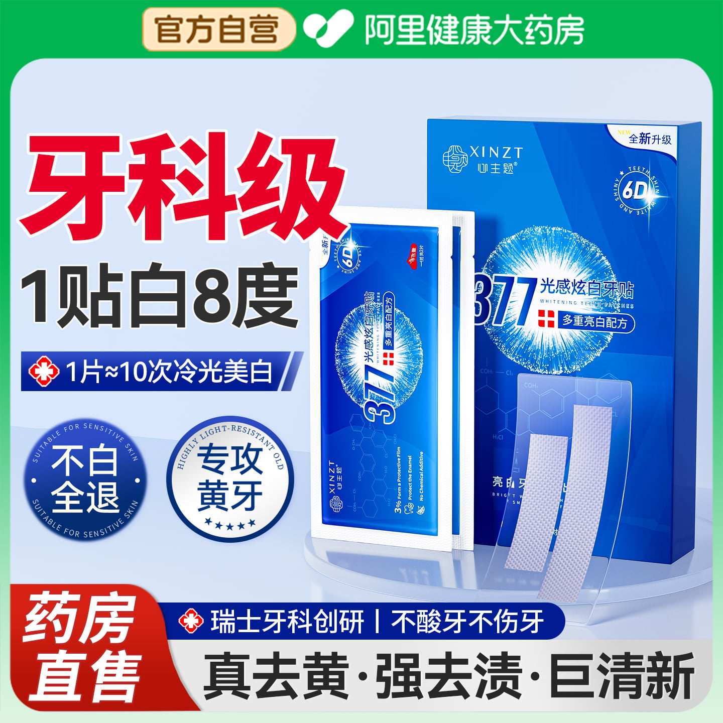 天猫377美白牙贴牙齿去黄洁白牙齿变白强清洁牙渍亮白神器贴片旗舰店