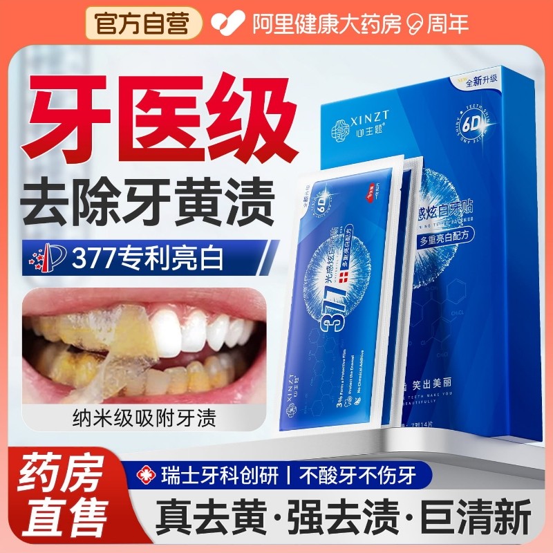天377美白牙贴牙齿强效去黄洁白牙膜贴片牙黄烟渍牙垢炫白变白神器