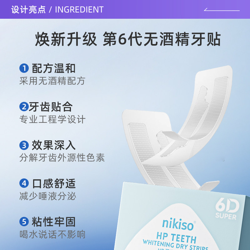 天猫【自营】nikiso亮白去黄洁牙贴白牙齿美牙神器薄荷味速效牙膜*6对