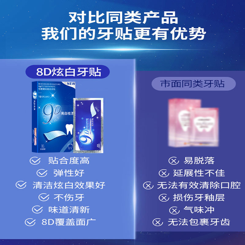 淘牙贴去黄洁白亮白牙齿贴片牙黄清洁牙白神器变白美白牙贴遮盖炫白