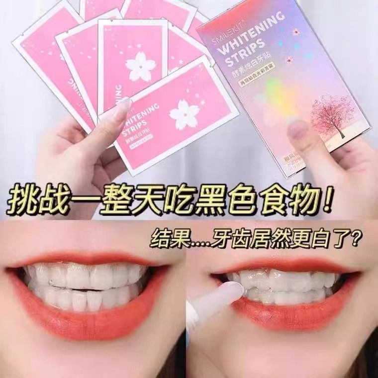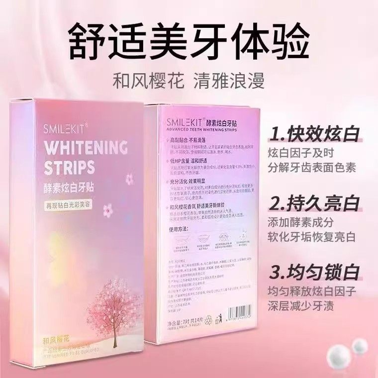 淘宝专业美白去黄洁白牙齿樱花炫白牙贴酵素亮白锁白牙贴盒套装去牙渍