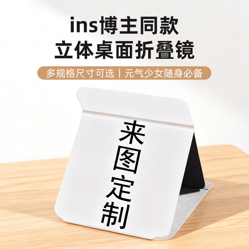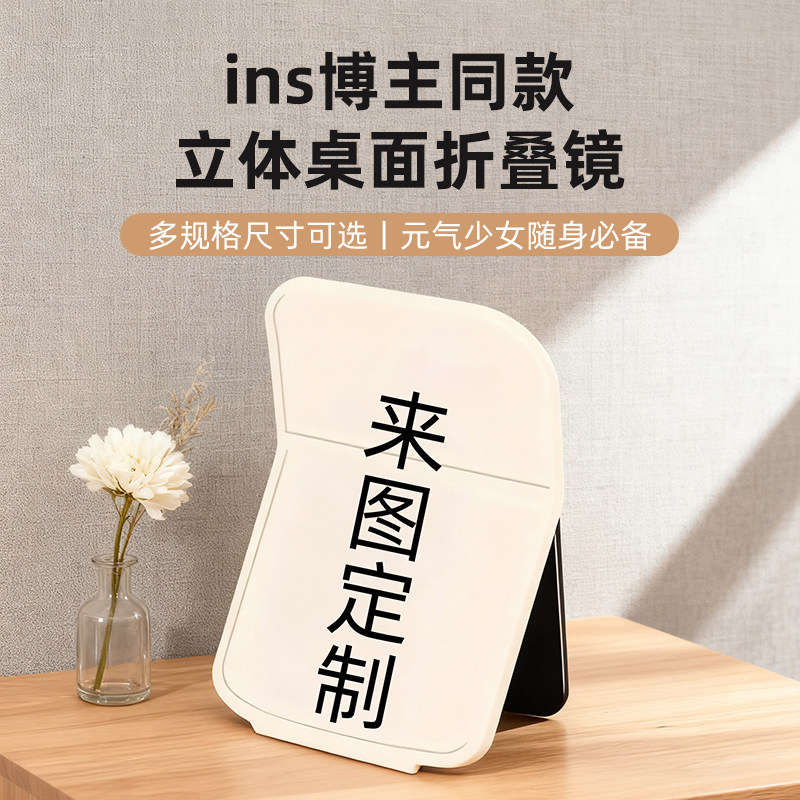 淘宝来图定制照片折叠化妆镜子收纳学生便携宿舍桌面用台式随身梳妆镜