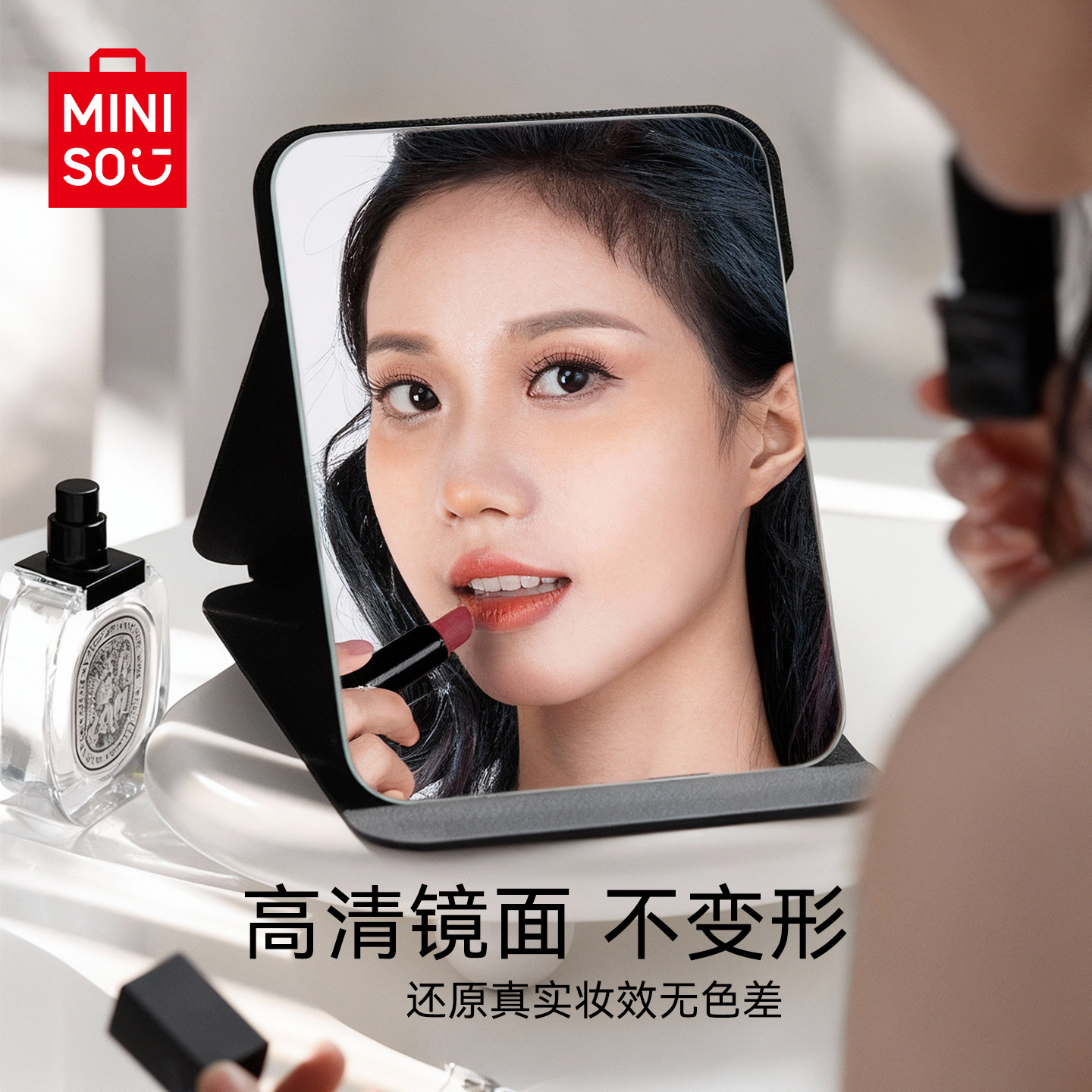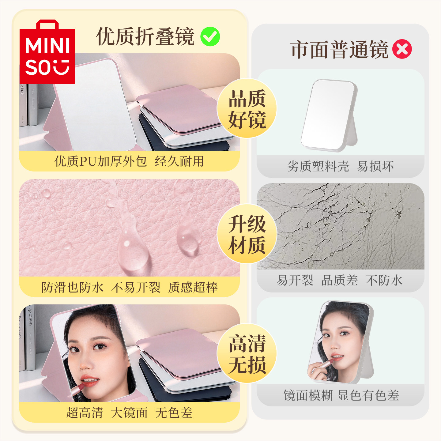 天猫MINISO名创优品精美折叠化妆镜高清超薄可调便携颜值镜子宿舍出行