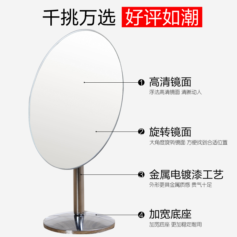 淘宝镜子化妆镜台式公主镜桌面梳妆镜学生大号镜宿舍镜折叠便携美容镜