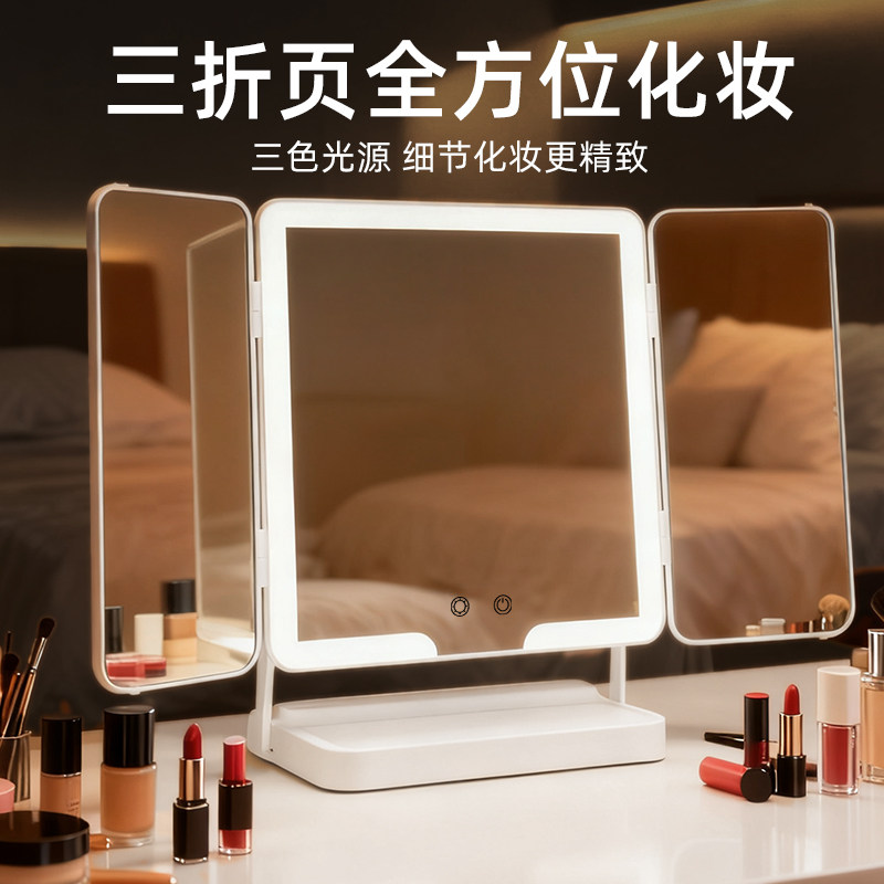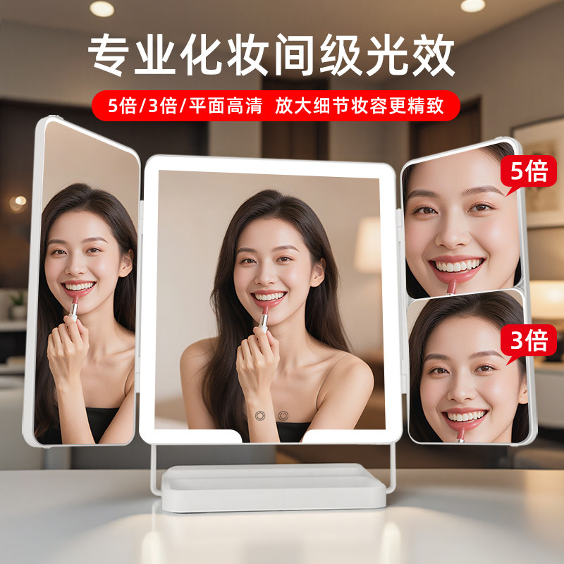 led化妆镜带灯折叠梳妆台智能高清台式便携随身学生宿舍桌面镜子