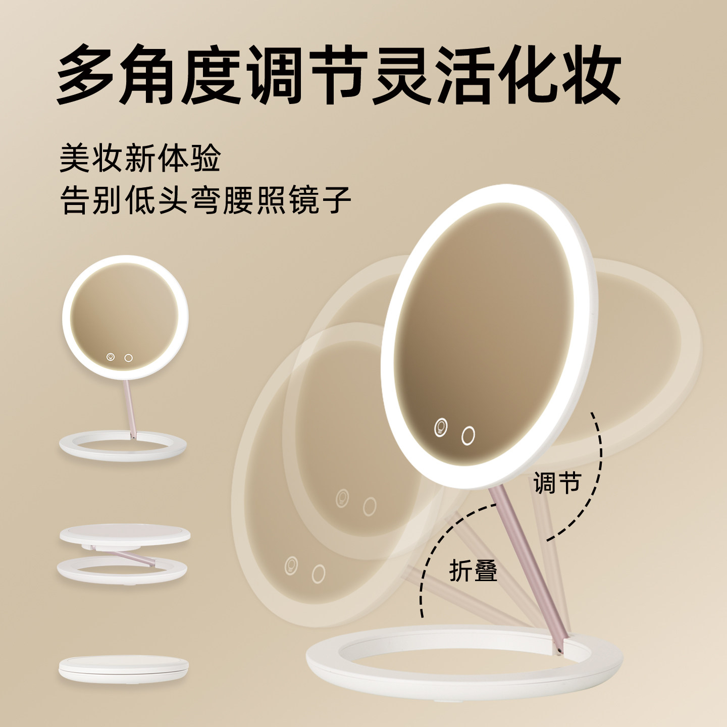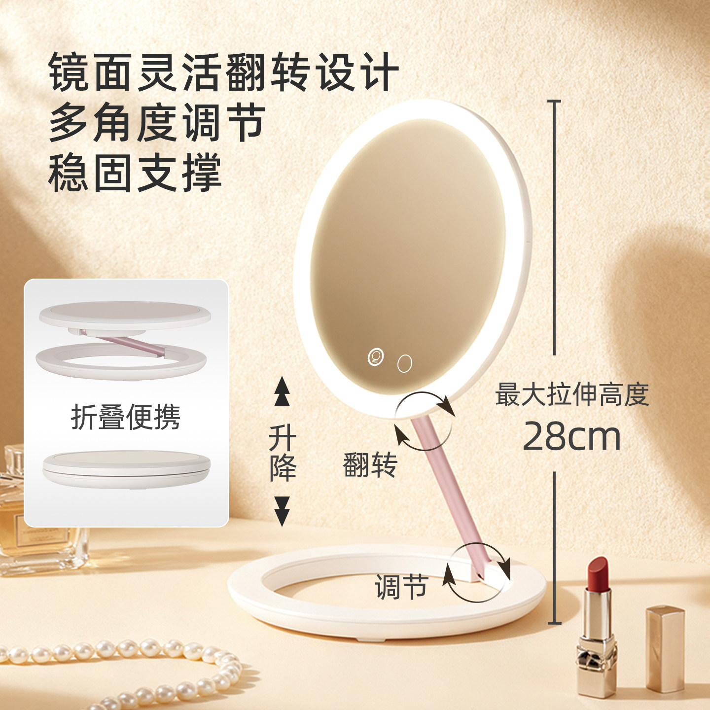 2025新款LED镜子化妆镜台式桌面带灯学生家用床头补光镜梳妆发光