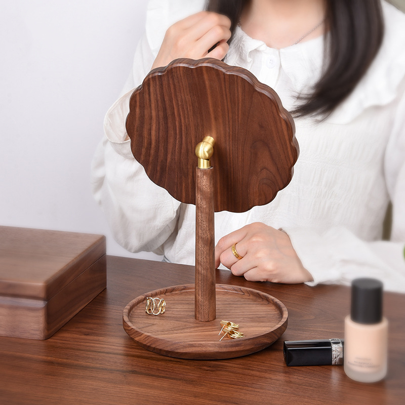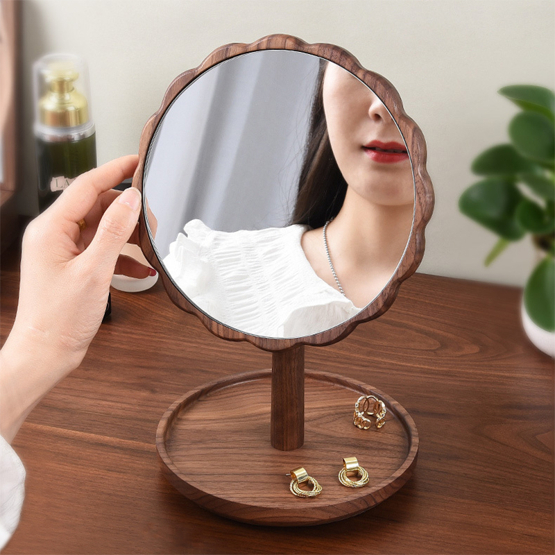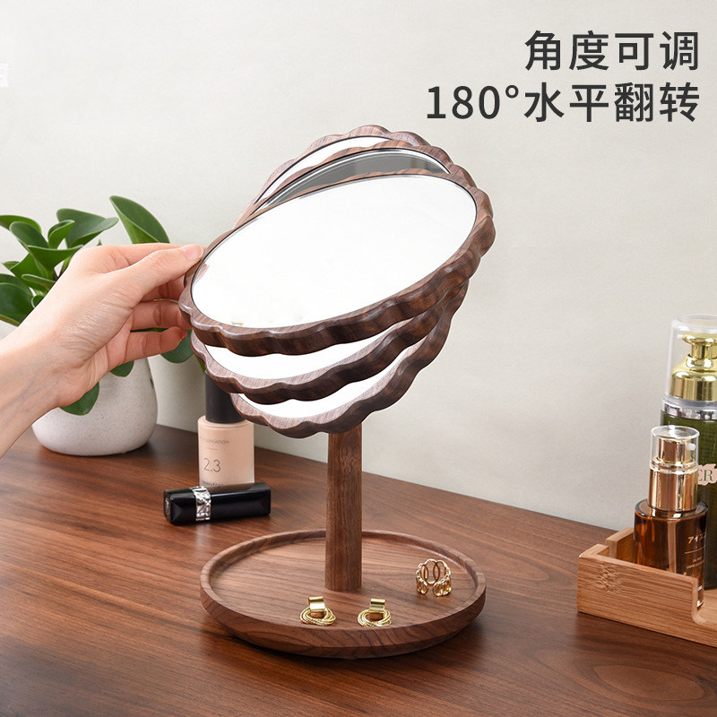这款实木化妆镜采用优质天然木材打造,框架结实耐用,环保健康,散发自然温润质感。圆形大镜面设计,视野开阔,高清成像,真实还原妆容细节,满足日常梳妆需求。复古雕花工艺搭配经典配色,彰显优雅公主风范,完美融入卧室、梳妆台等家居空间。台式摆放稳固,不占空间,兼具实用性与装饰性。无论是晨起护肤还是夜晚卸妆,都能带来舒适愉悦的使用体验。精致细节与匠心工艺相结合,既是实用梳妆镜,也是提升居家品味的艺术摆件,为现代女性打造专属的优雅角落。