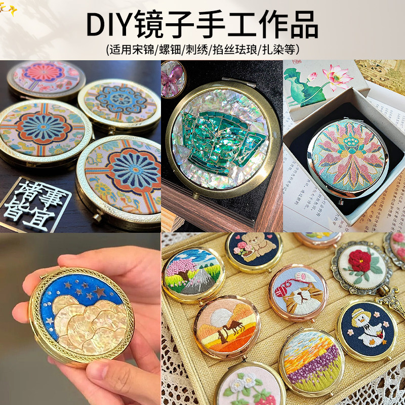 淘宝镜子底胚手工diy材料包随身小镜子底座宋锦折叠化妆镜非遗古风