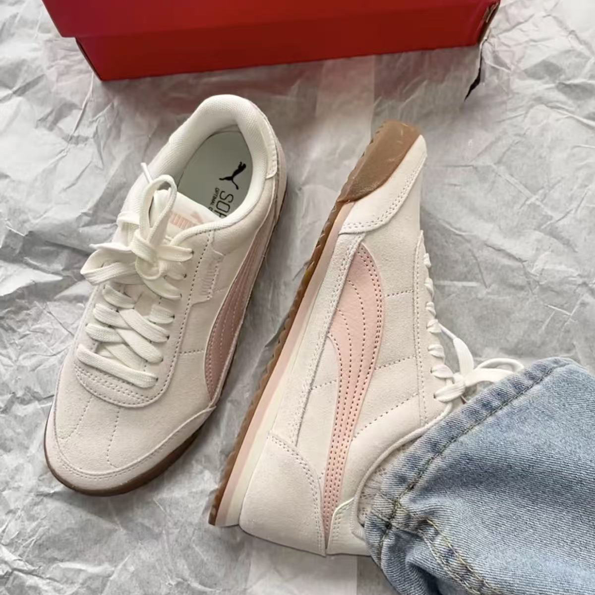 PUMA彪马复古粉色阿甘鞋(型号:403048/403041)是2023年推出的新款女鞋,融合经典复古设计与现代舒适科技。鞋身采用优质皮革与透气网布拼接,搭配柔和粉色系,彰显甜美又不失活力的街头风格。薄底设计轻盈贴合脚型,提供自然行走体验,同时提升整体穿搭的时尚感。经典条纹Logo点缀侧边,延续品牌辨识度。橡胶外底防滑耐磨,适合日常通勤、休闲出行等多种场合。无论是搭配牛仔裤、裙装还是运动风造型,都能轻松驾驭,展现个性与品味。这款鞋兼顾颜值与实穿性,是追求潮流与舒适女性的理想之选。