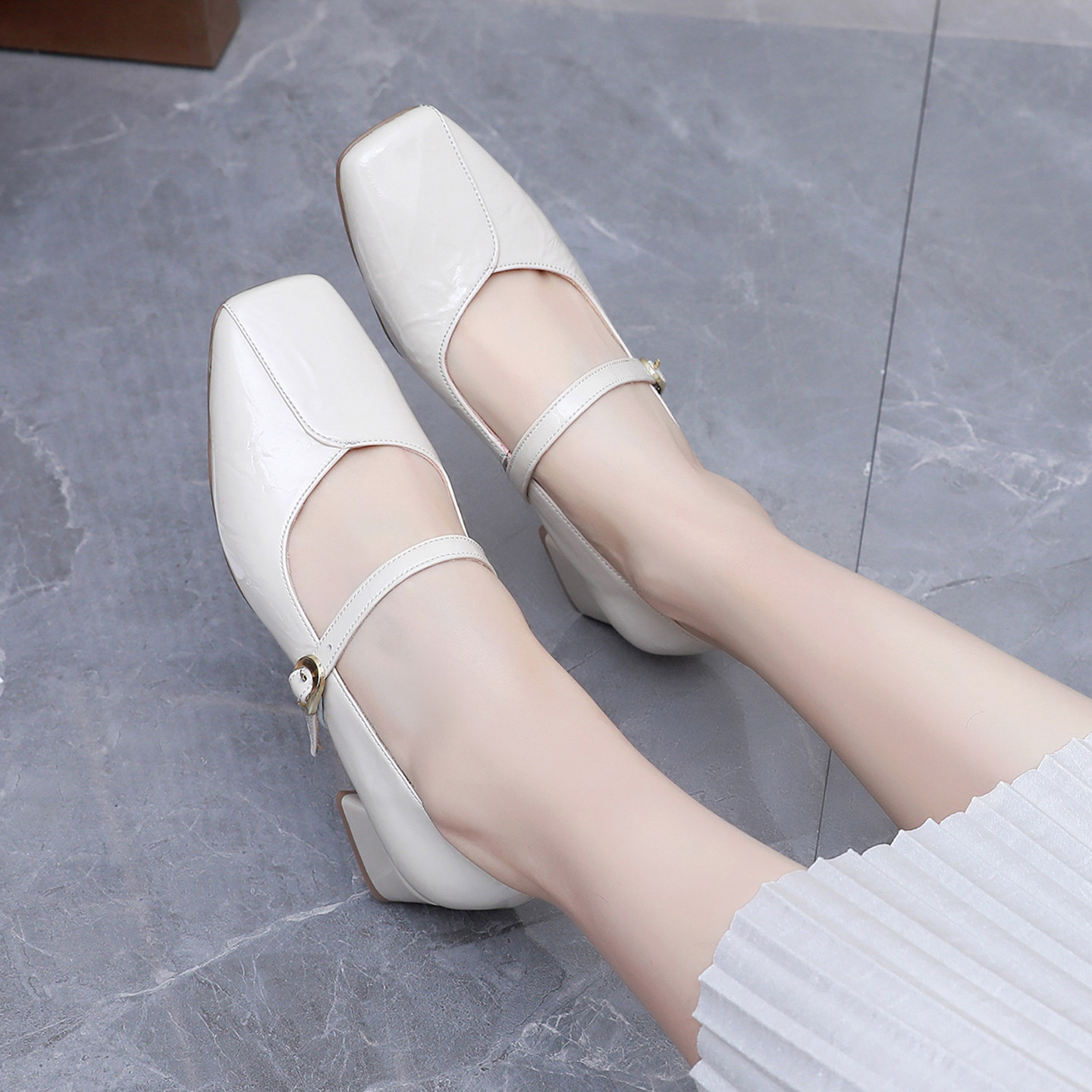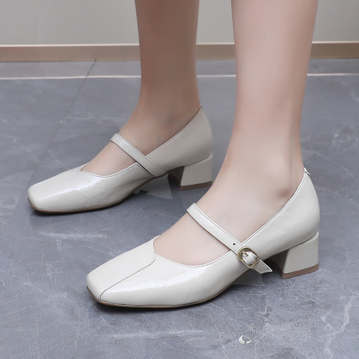 淘宝粗跟一字带玛丽珍女鞋春夏款方头通勤小皮鞋休闲女鞋舒适真皮单鞋