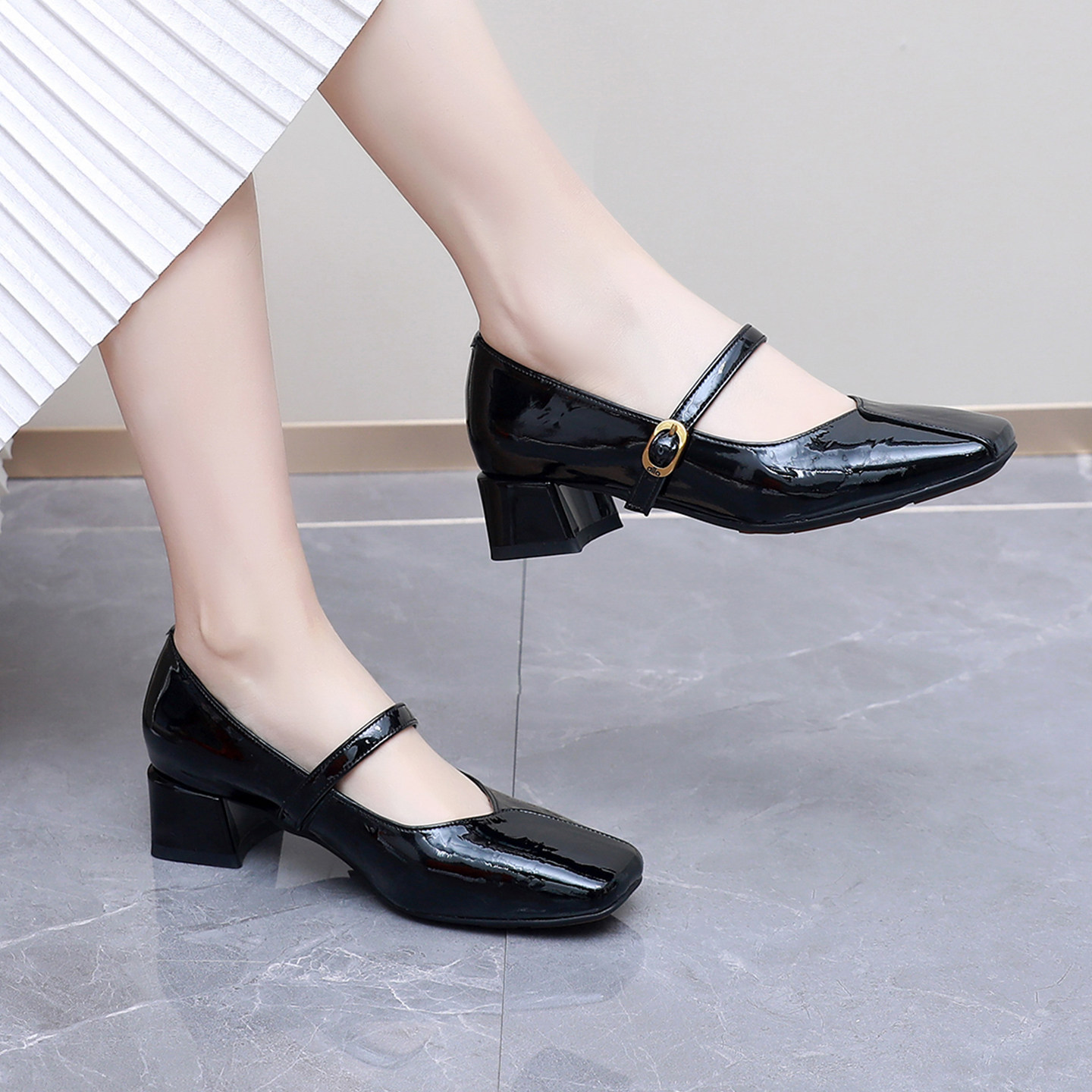 这款春夏款粗跟一字带玛丽珍女鞋,融合经典与时尚,方头设计优雅大方,兼顾舒适与美感。精选优质真皮材质,柔软透气,贴合脚型,久穿不累。一字带扣饰简约精致,轻松穿脱,稳固贴合脚踝。粗跟设计提升身姿的同时确保行走稳健,适合日常通勤、休闲出行等多种场合。无论是搭配裙装还是裤装,都能展现知性温婉的气质。轻便耐穿的鞋底,防滑耐磨,为都市女性提供全天候舒适体验。是春夏季节不可或缺的百搭单品,兼顾实用性与时尚感,轻松打造优雅通勤风。