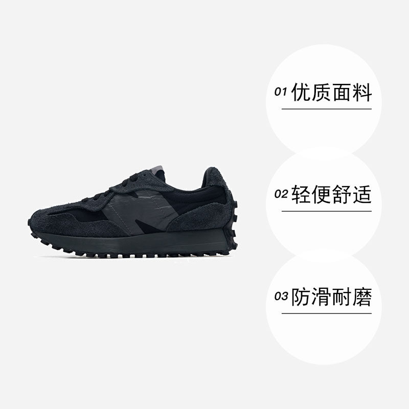 天猫【自营】New Balance NB男女鞋透气327厚底鞋黑武士休闲鞋U327WCD