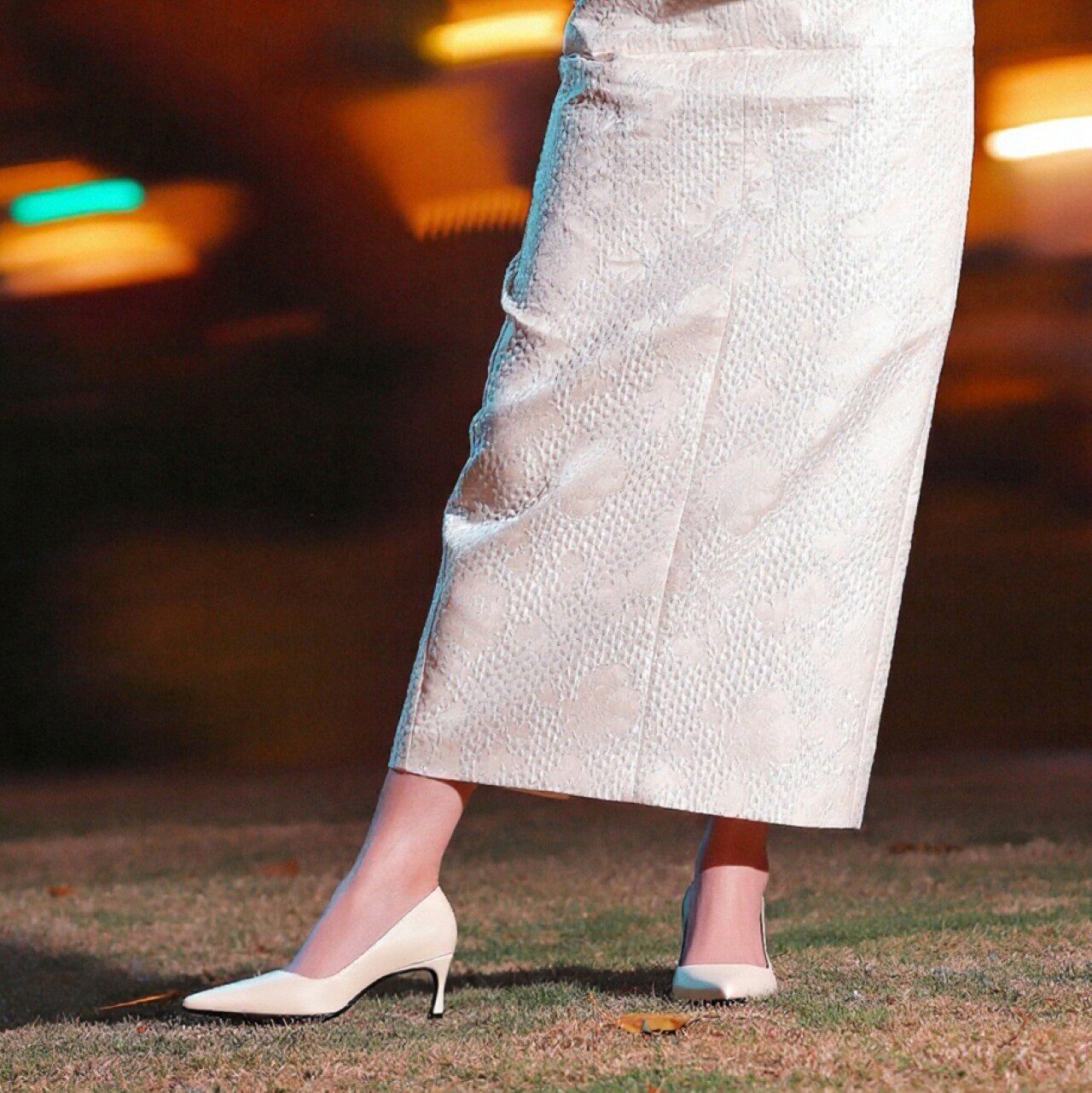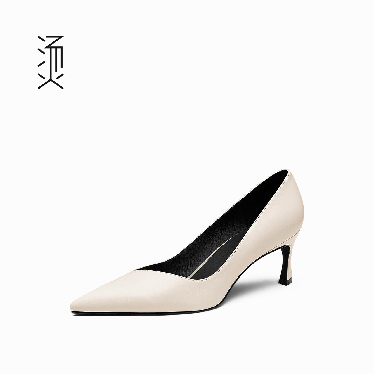 天猫烫社交女鞋米白色牛皮尖头中高跟鞋春季款时尚淑女气质小香风单鞋