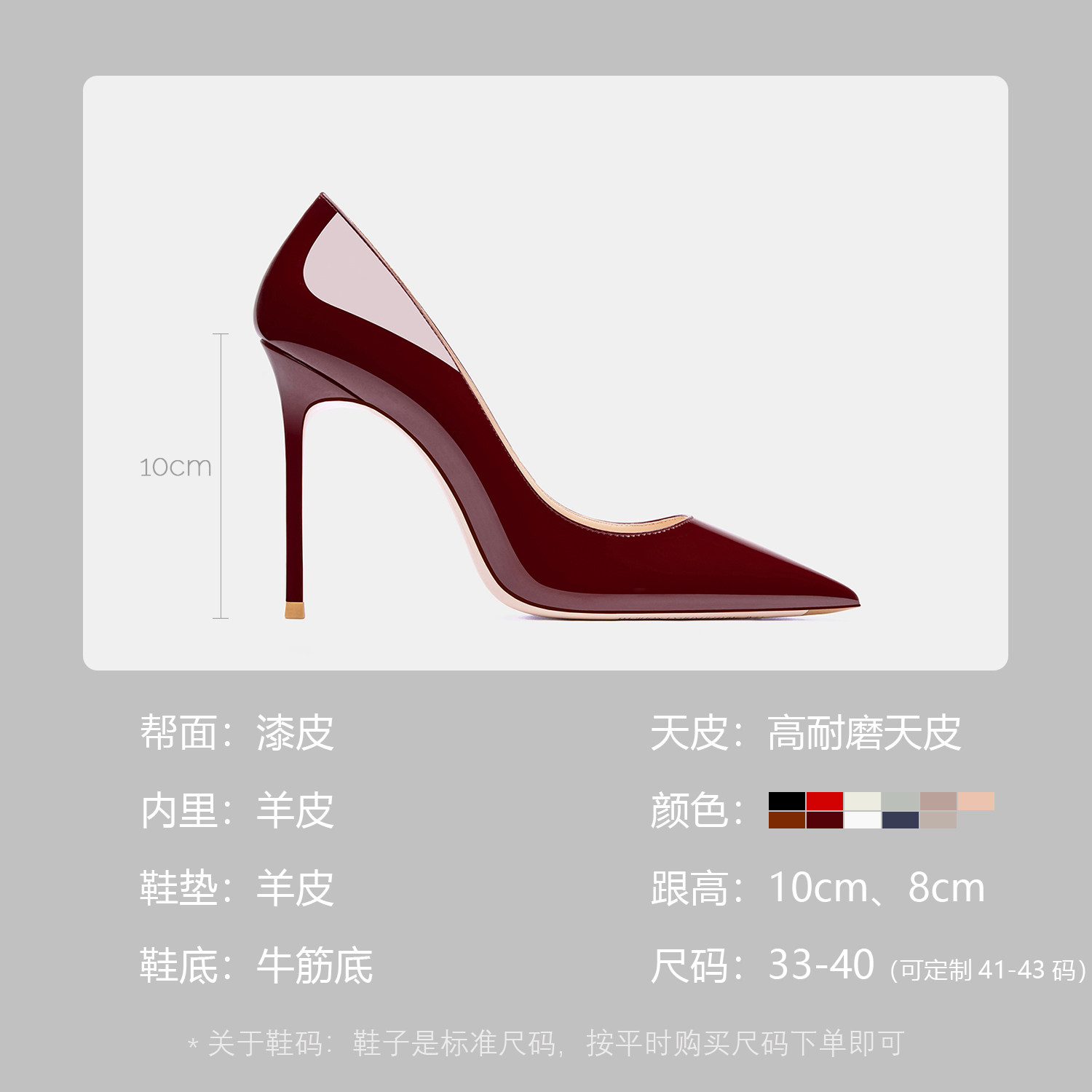 2025年秋季新款酒红色细跟漆皮尖头单鞋,以优雅与性感完美融合的设计,诠释现代女性的自信魅力。精选高光泽漆皮材质,质感细腻,酒红色浓郁深邃,尽显高级气质。尖头浅口设计拉长腿部线条,搭配纤细高跟,步履间摇曳生姿,散发迷人女神范。鞋面简约流畅,无多余装饰,凸显精致工艺与时尚品味。无论是通勤搭配西装,还是晚宴配礼服,都能轻松驾驭,成为整体造型的点睛之笔。舒适内里与稳固跟型兼顾美感与实穿,是追求品质与风格女性的秋季必备单品。穿上它,每一步都踏出自信与风情。