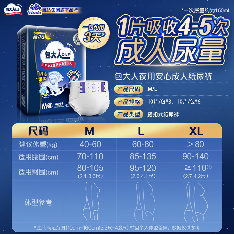 包大人干爽舒适基础型成人纸尿裤粘贴式M/L/XL老人用孕产妇尿不湿