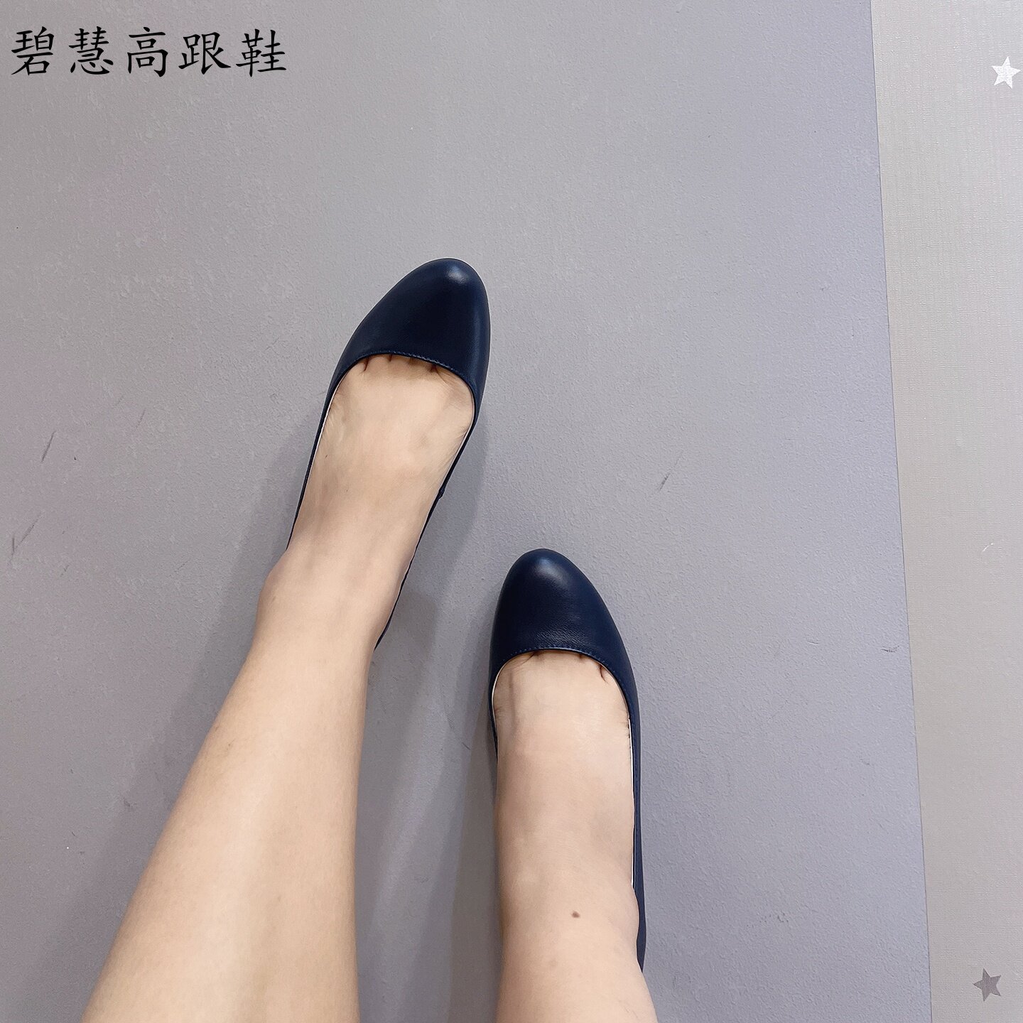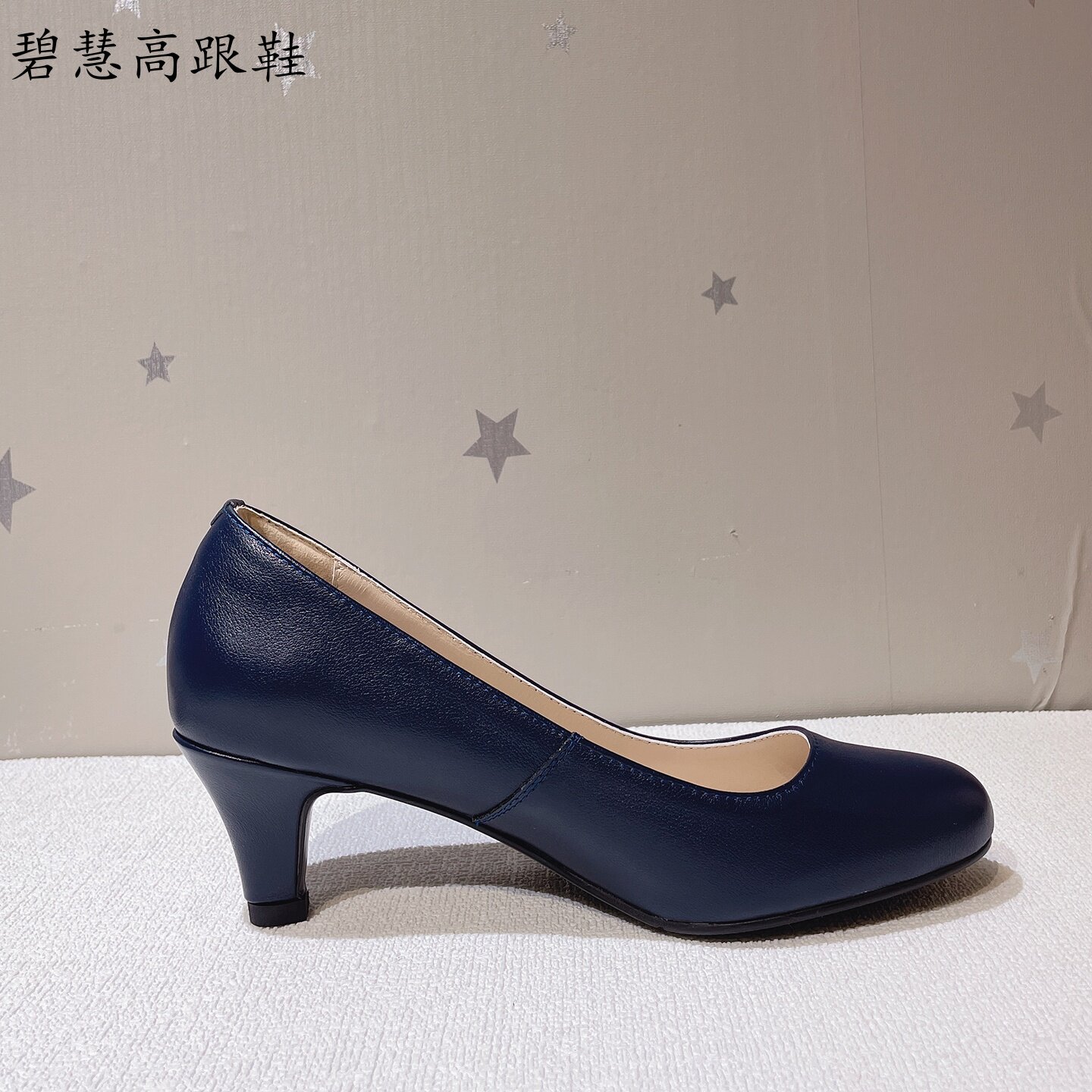 壹家shoes040003超软羊皮单鞋4公分真皮圆头高跟鞋防掉跟不累脚女