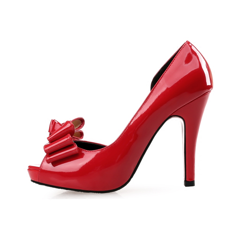 淘宝2016新品红白色蝴蝶结绸缎防水台鱼嘴婚鞋伴娘细高跟单鞋