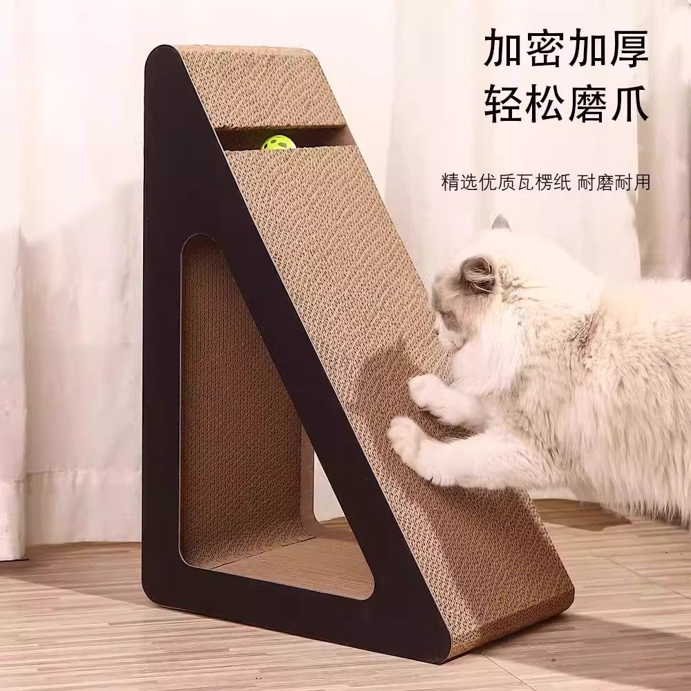 立式三角形猫抓板,专为猫咪设计,集磨爪、娱乐、休息于一体。采用高密度瓦楞纸材质,耐抓耐磨,不易掉屑,环保安全,呵护猫咪健康。稳固的三角结构,重心低、不易倾倒,猫咪可尽情抓挠、攀爬、倚靠。表面纹理适中,有效清洁猫爪,减少指甲过长问题。同时兼具磨爪板与玩具功能,帮助猫咪释放天性,缓解焦虑。小巧省空间,适合家居、办公室等多种环境。是猫咪日常护理的必备用品,让爱宠享受健康快乐的生活,也为家具提供贴心保护。优质猫咪用品,值得每一位铲屎官信赖。