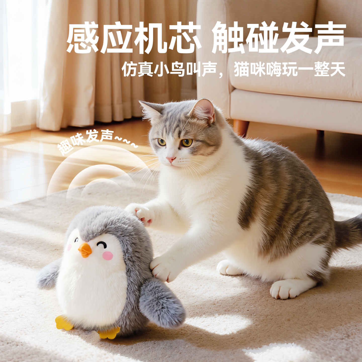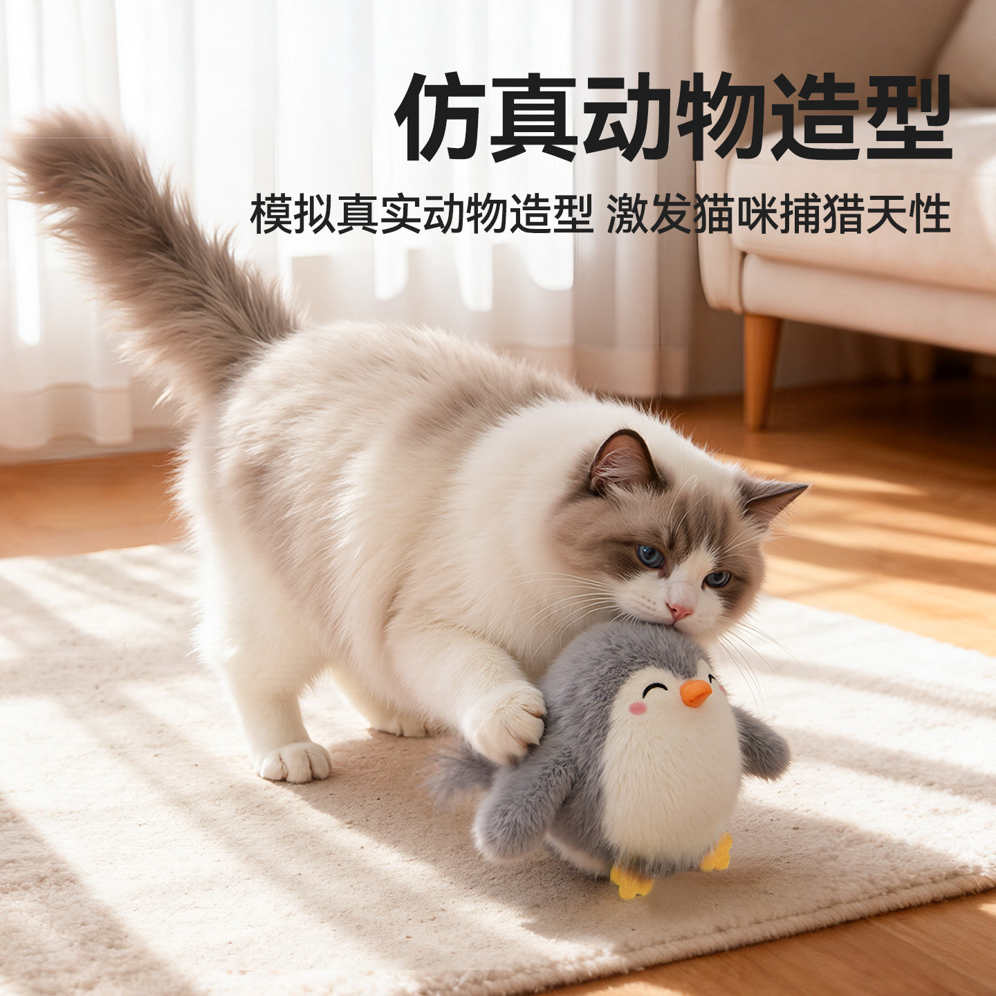 淘宠有引力扑腾小肥啾猫咪自嗨解闷玩具仿真布谷鸟自动逗猫棒猫玩具