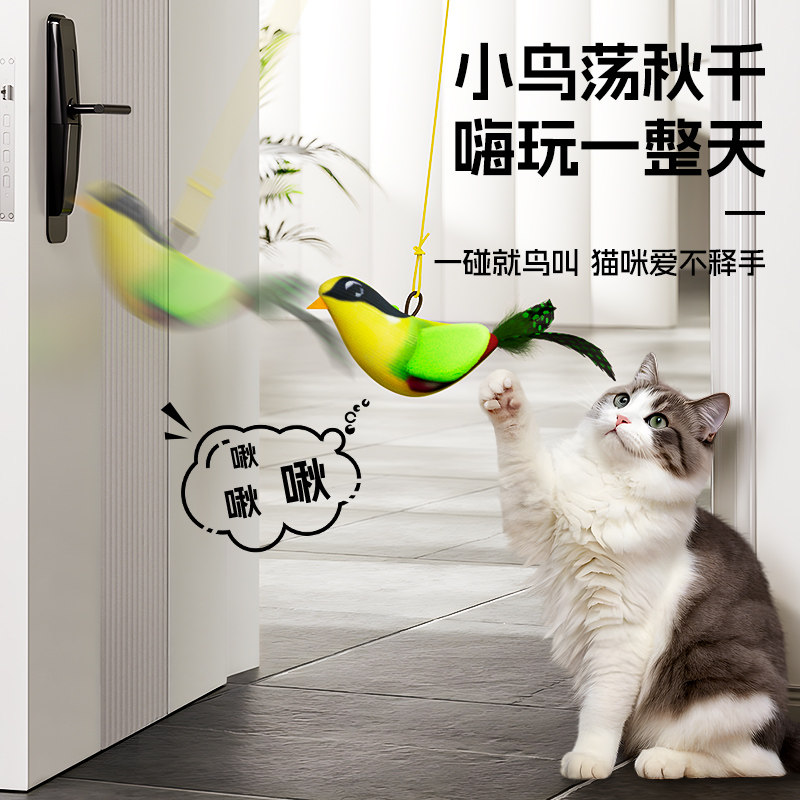 天猫猫玩具鸟自嗨解闷荡秋千逗猫小鸟猫咪猫猫小猫发声仿真鸟猫的玩具