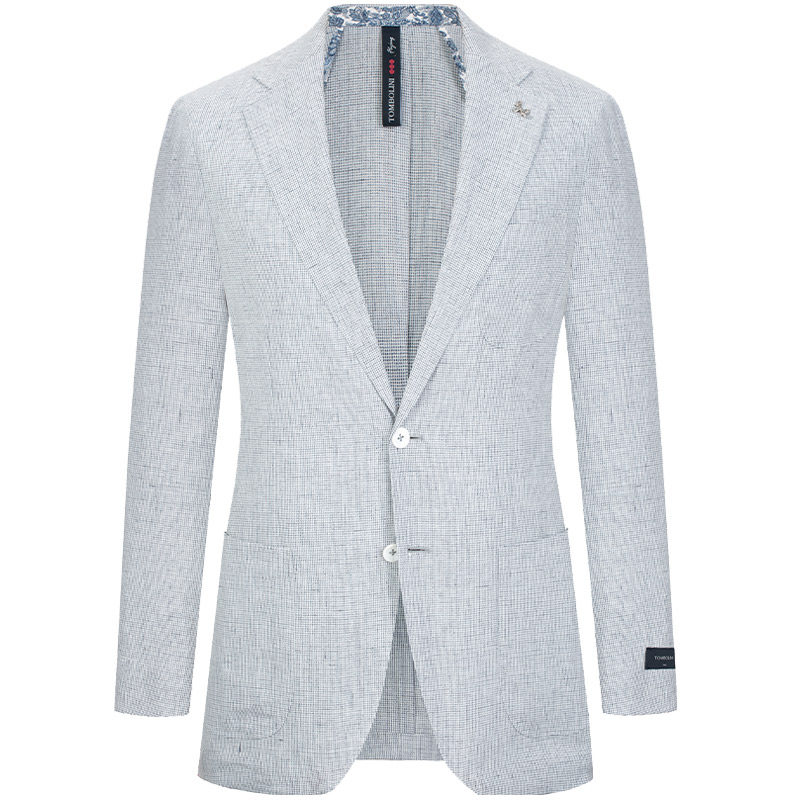天猫TOMBOLINI东博利尼秋季格子休闲西装男薄 高端亚麻蓝白色西服外套